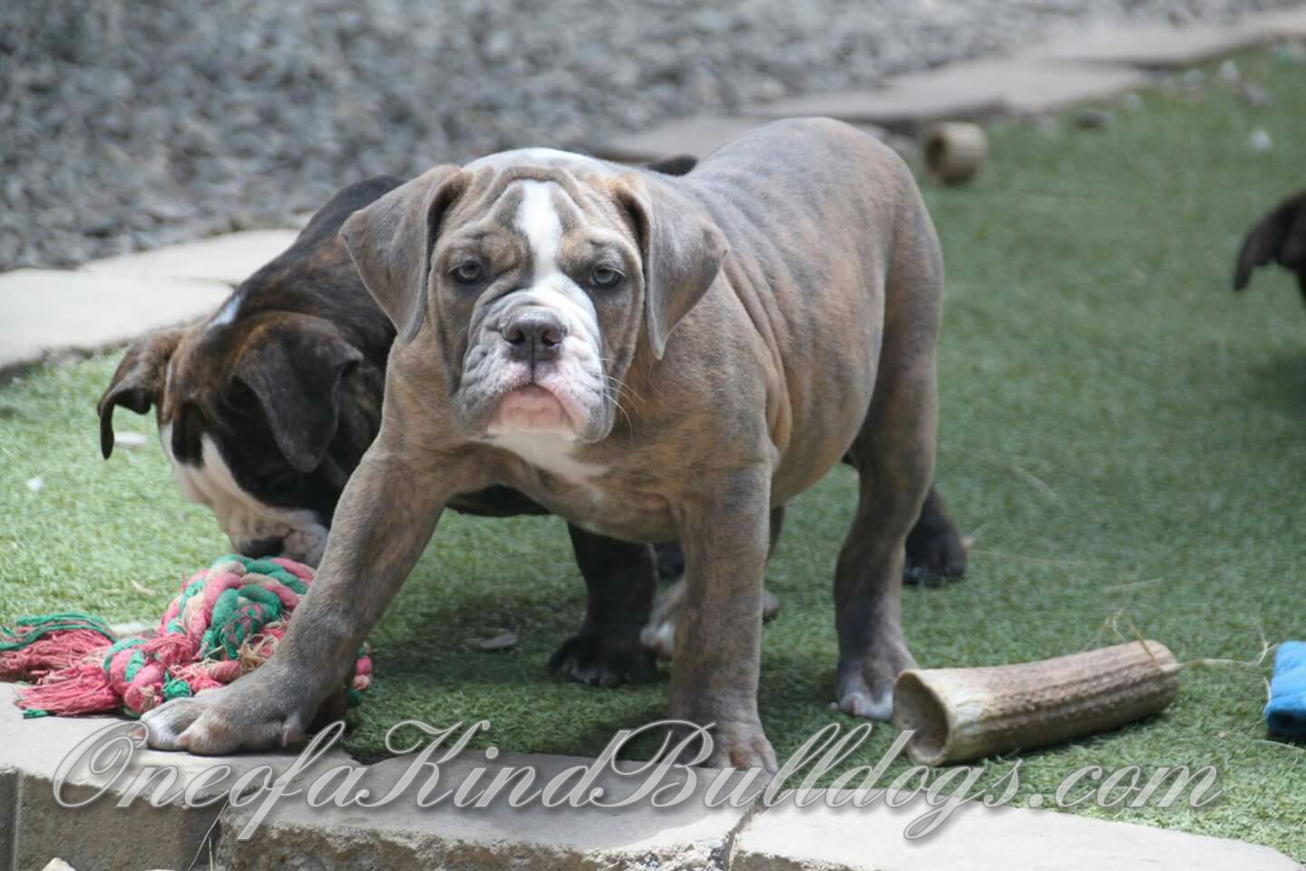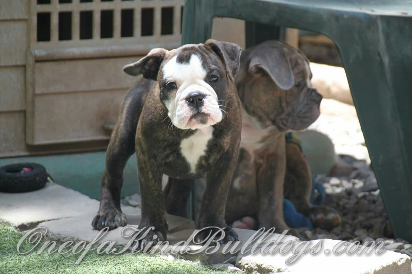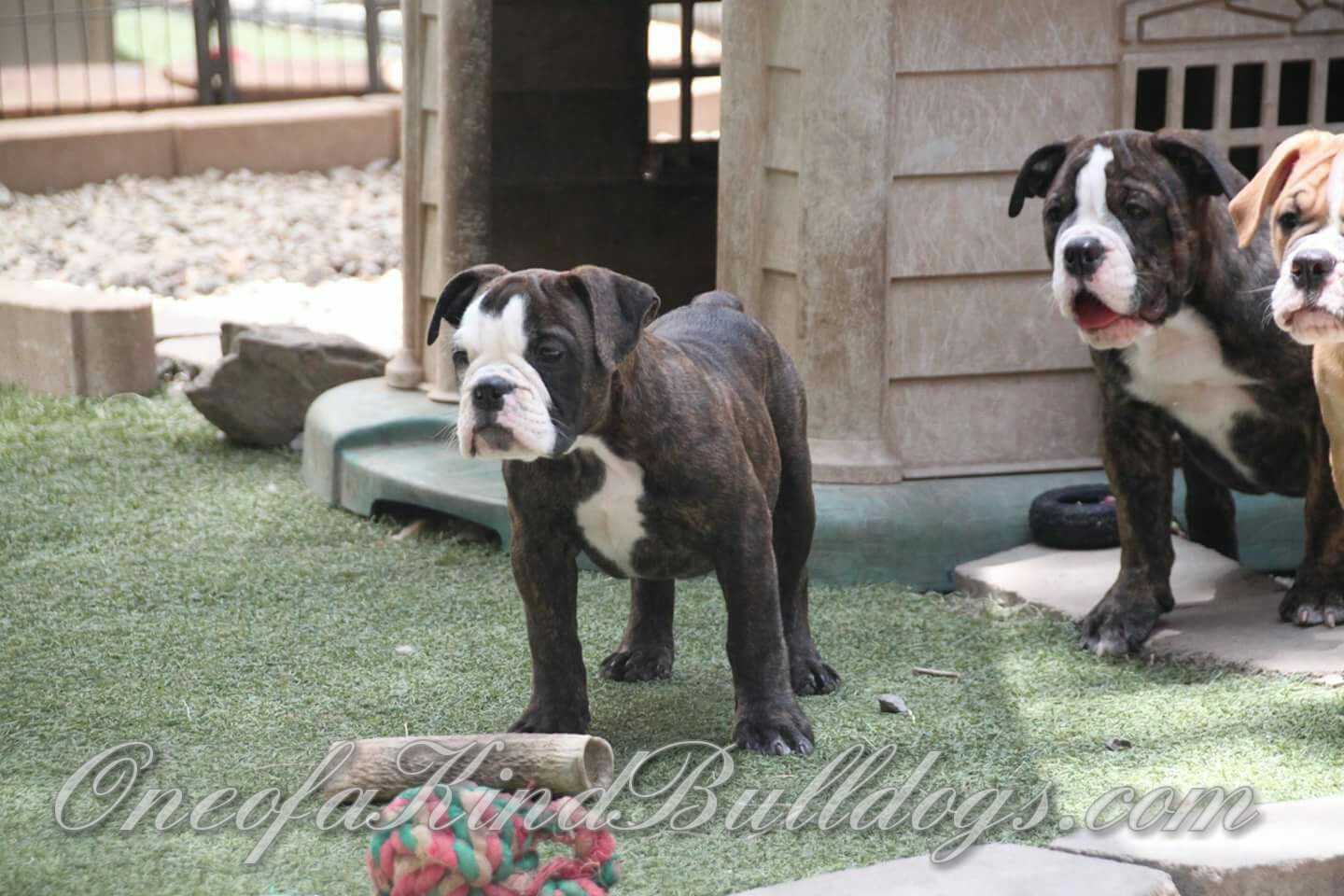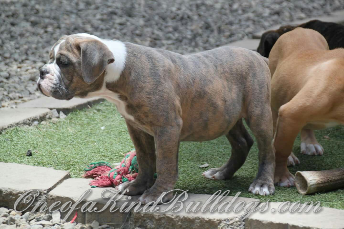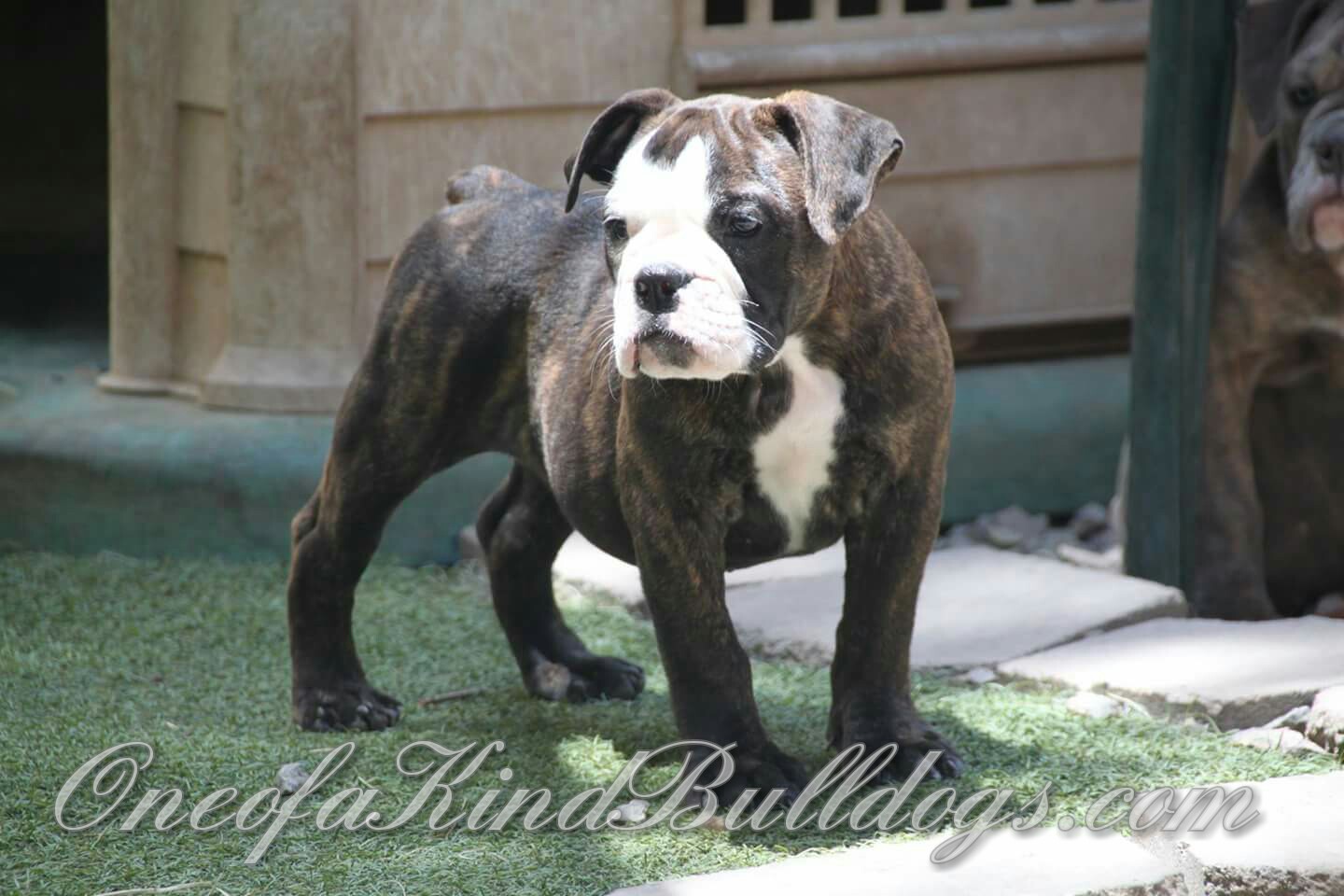 This is probably our very last litter with our Beef as he is now living the good life in Venice Beach with a repeat customer. We are more than impressed with this litter, we expect these pups to be some beefy Bulldogges. These puppies were born on 3-15-16 and are ready for loving pet homes now. Both Beef and Pretty were produced here at One of a Kind Bulldogs and some of the grandparents and great-grandparents were either produced here or owned by us.