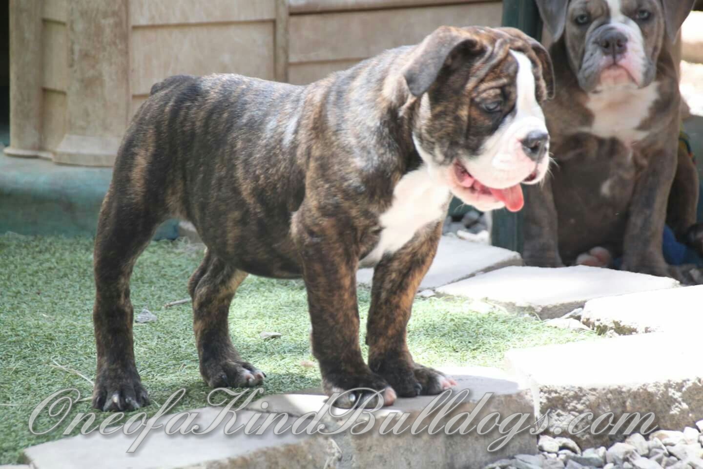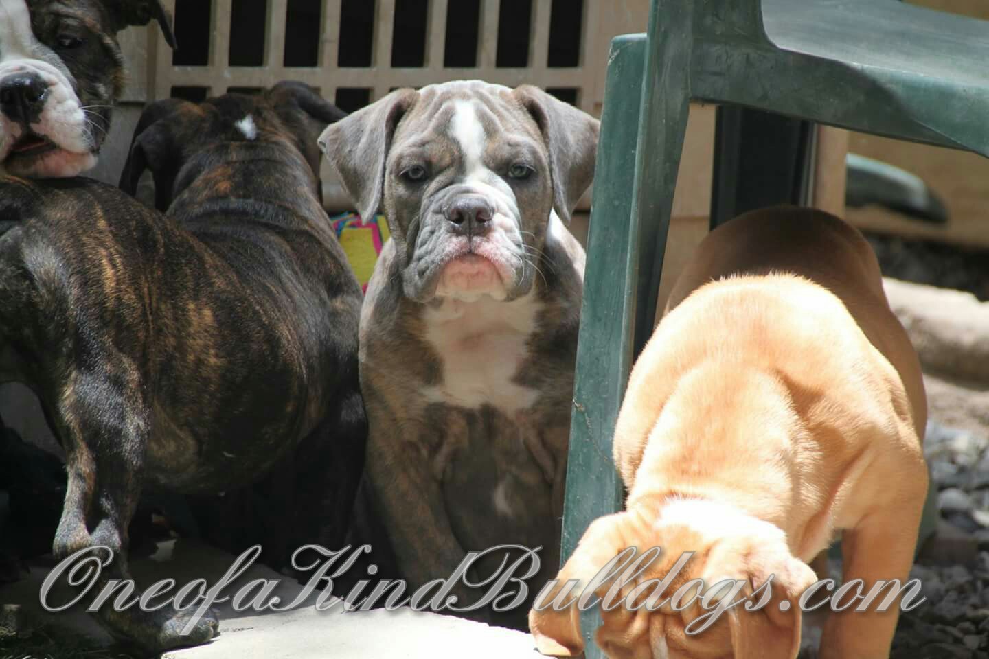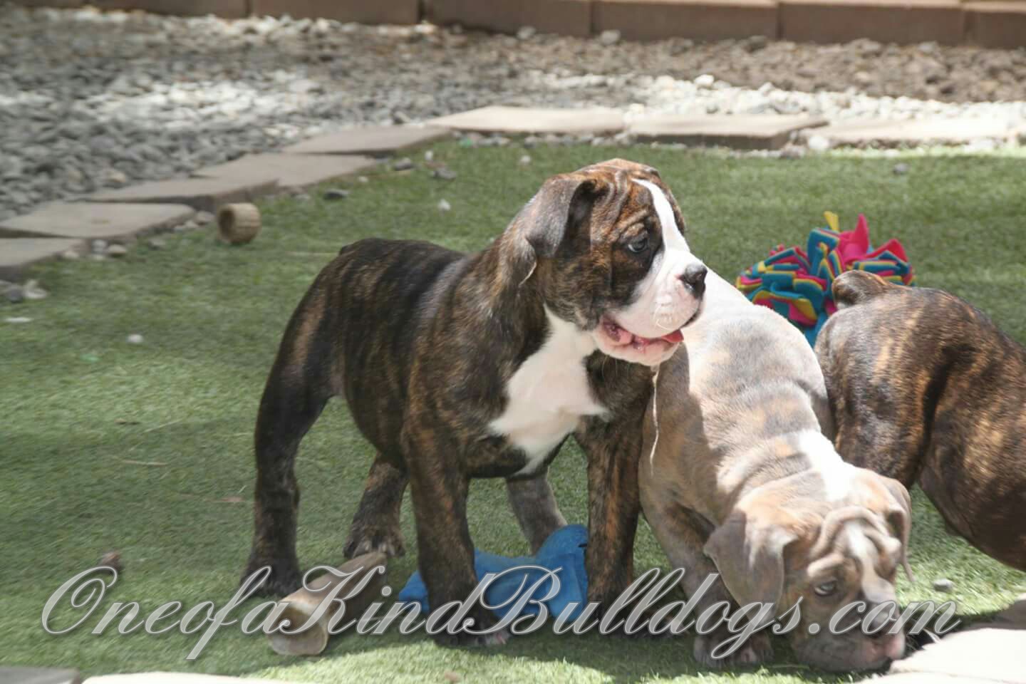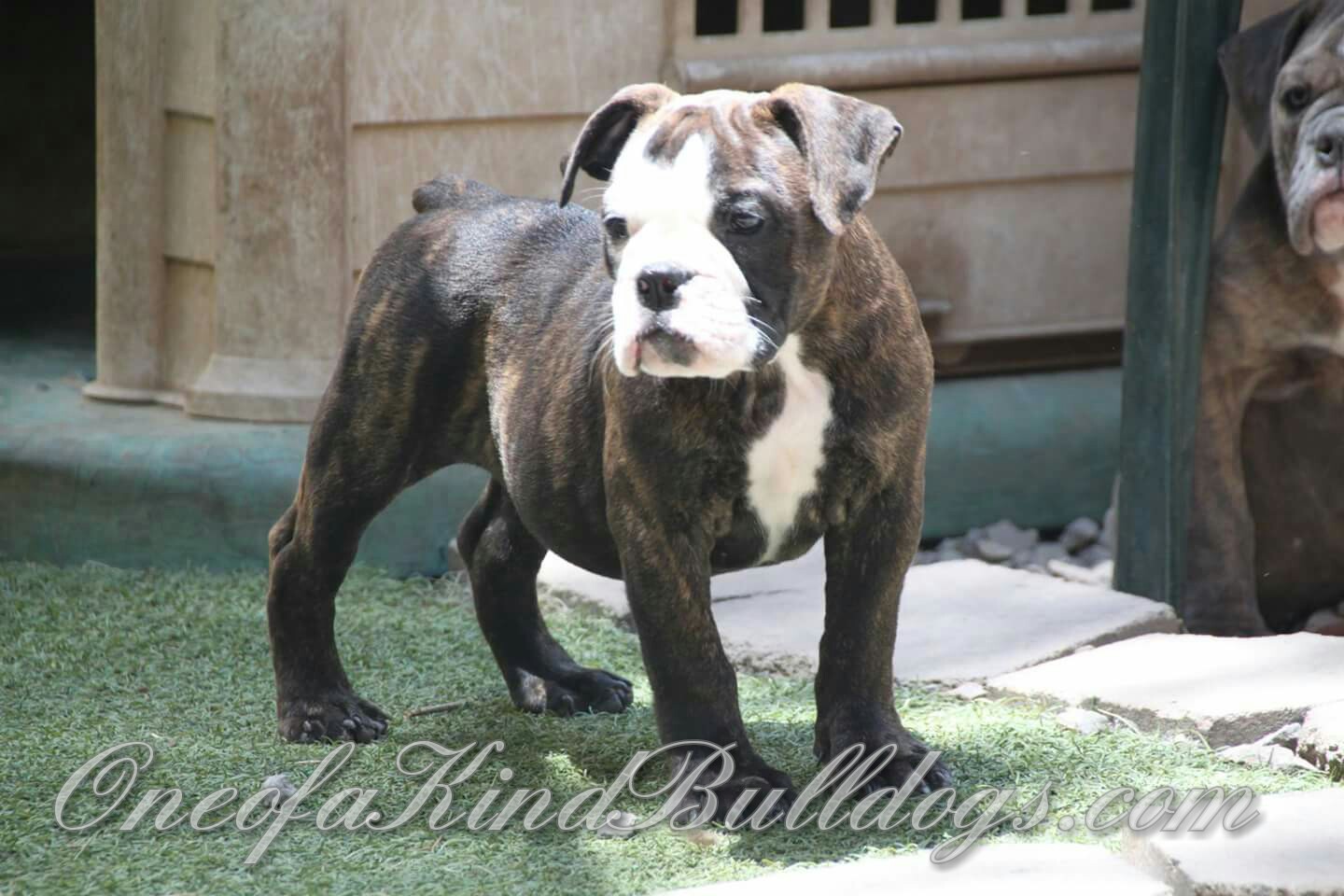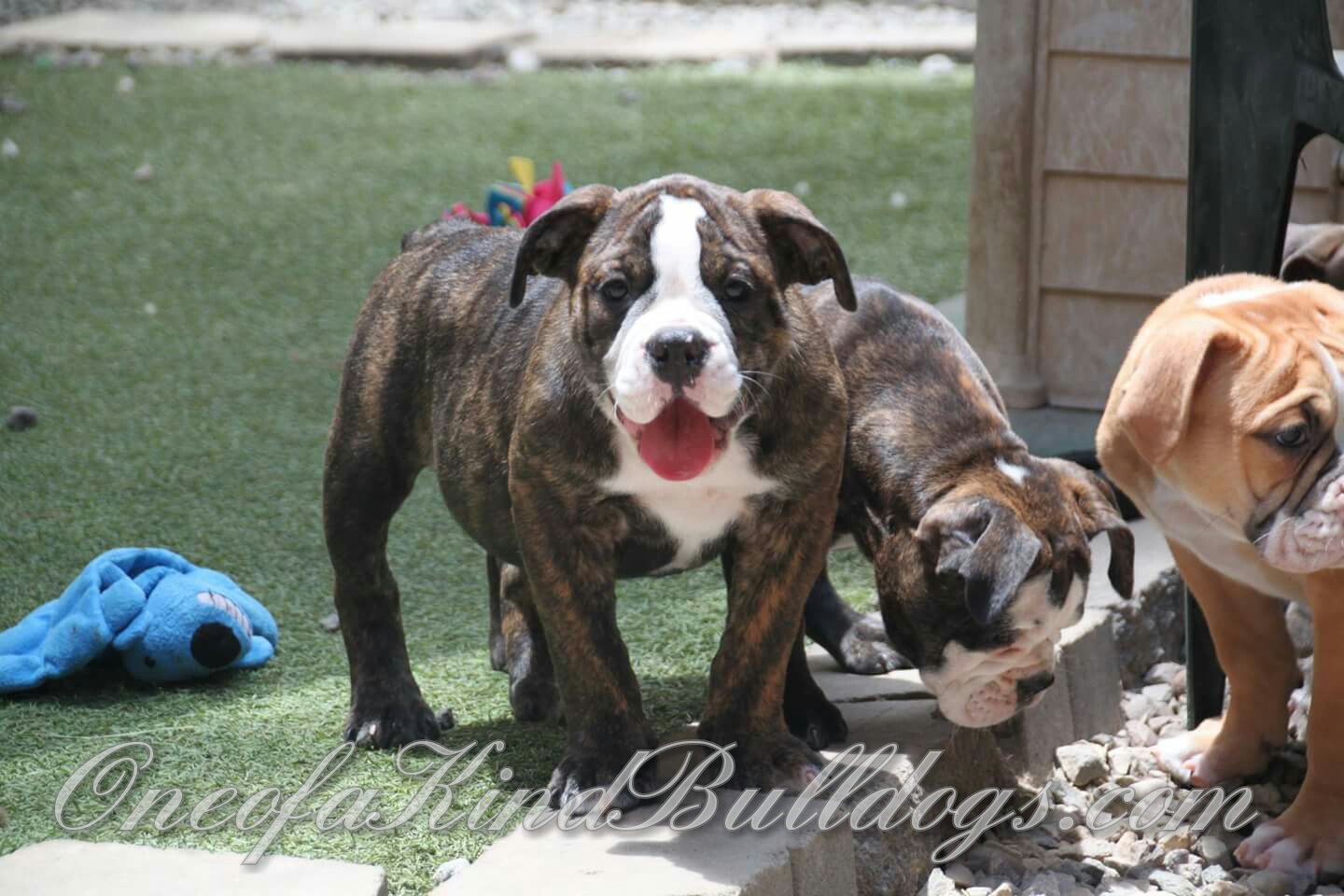 This is probably our very last litter with our Beef as he is now living the good life in Venice Beach with a repeat customer. We are more than impressed with this litter, we expect these pups to be some beefy Bulldogges. These puppies were born on 3-15-16 and are ready for loving pet homes now. Both Beef and Pretty were produced here at One of a Kind Bulldogs and some of the grandparents and great-grandparents were either produced here or owned by us.