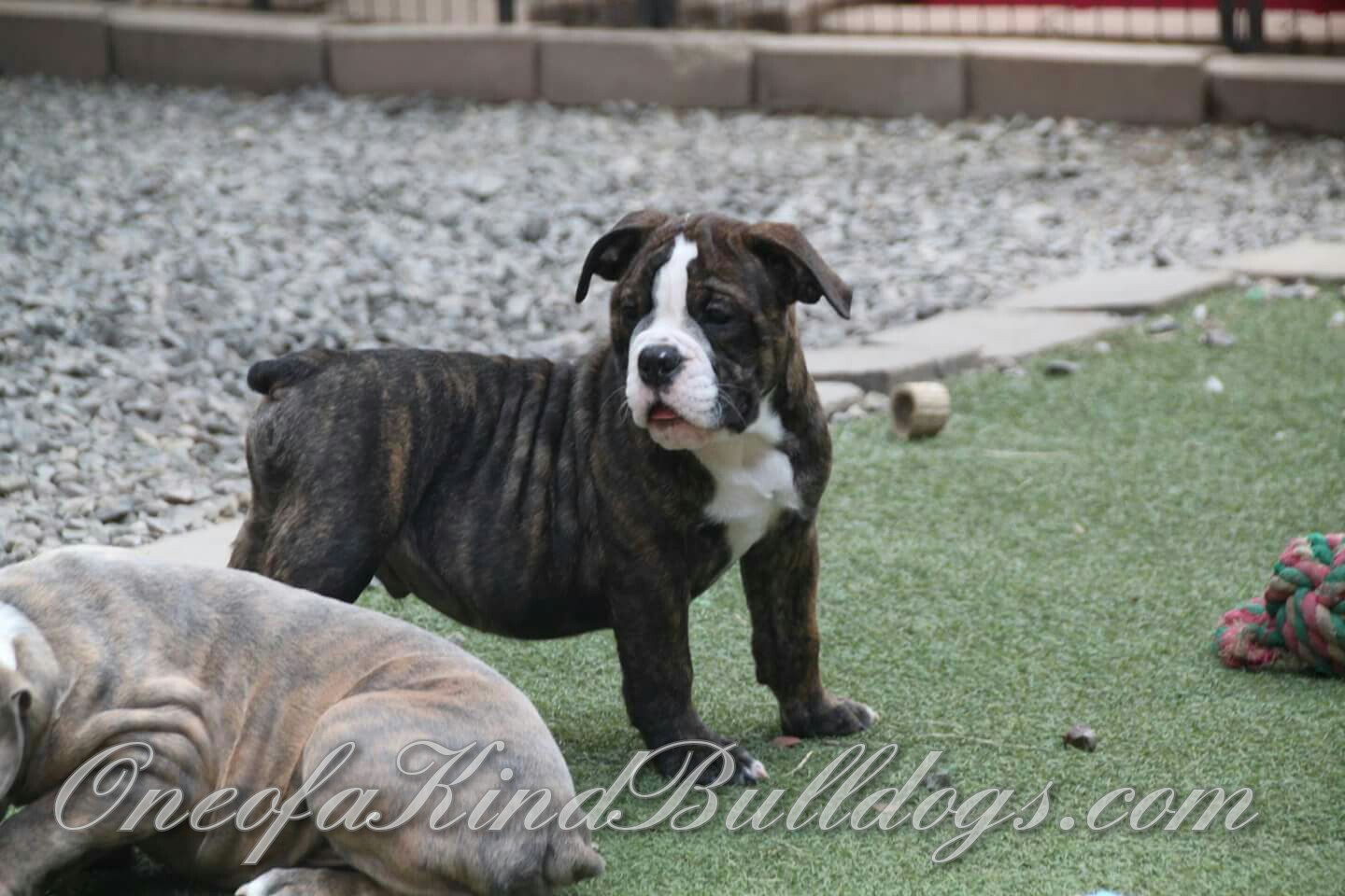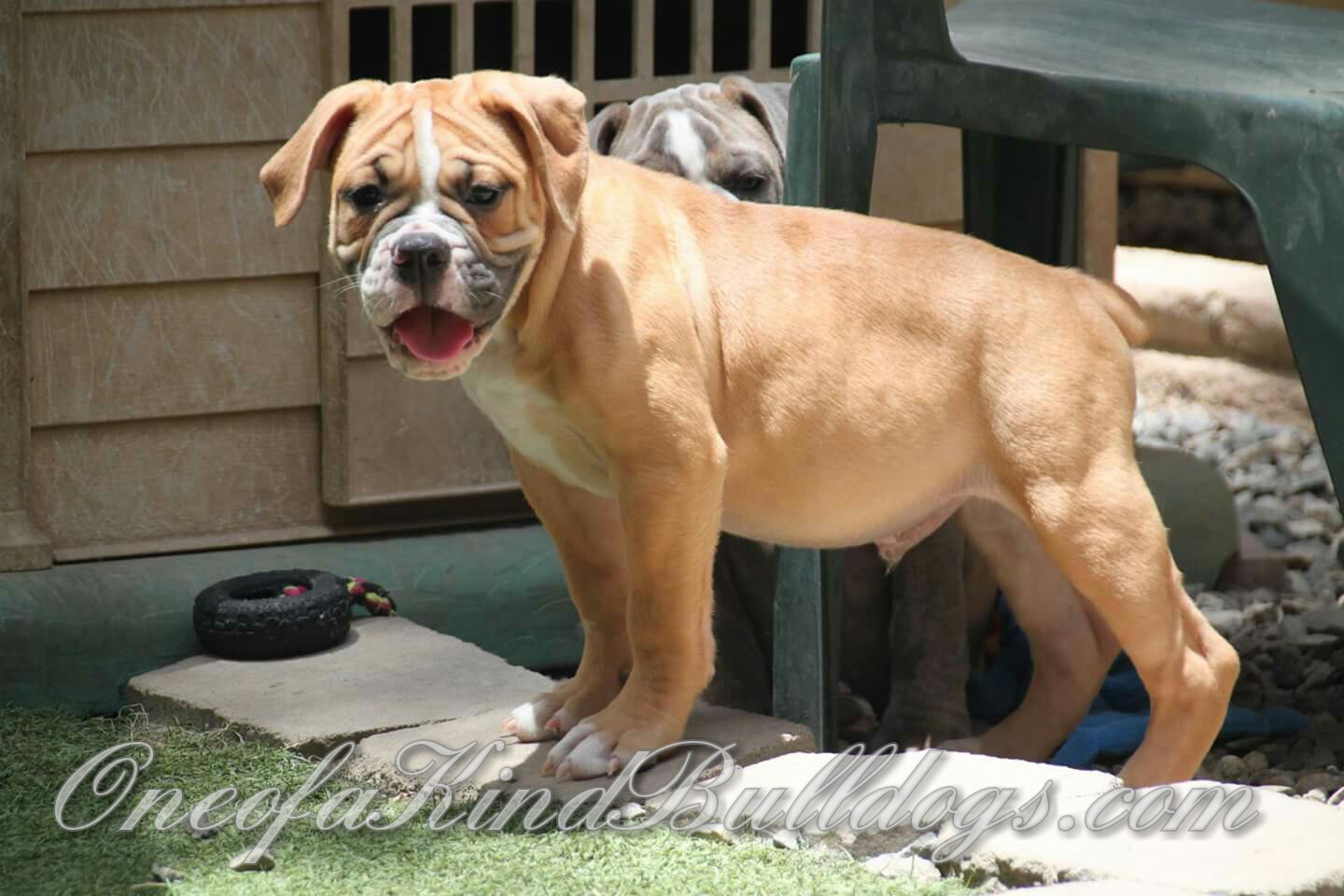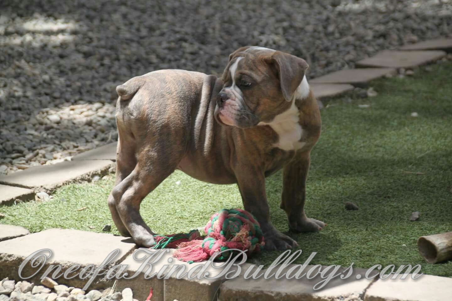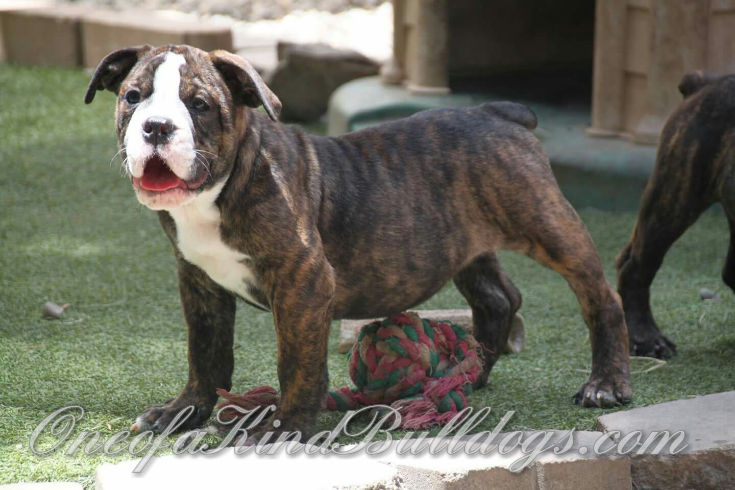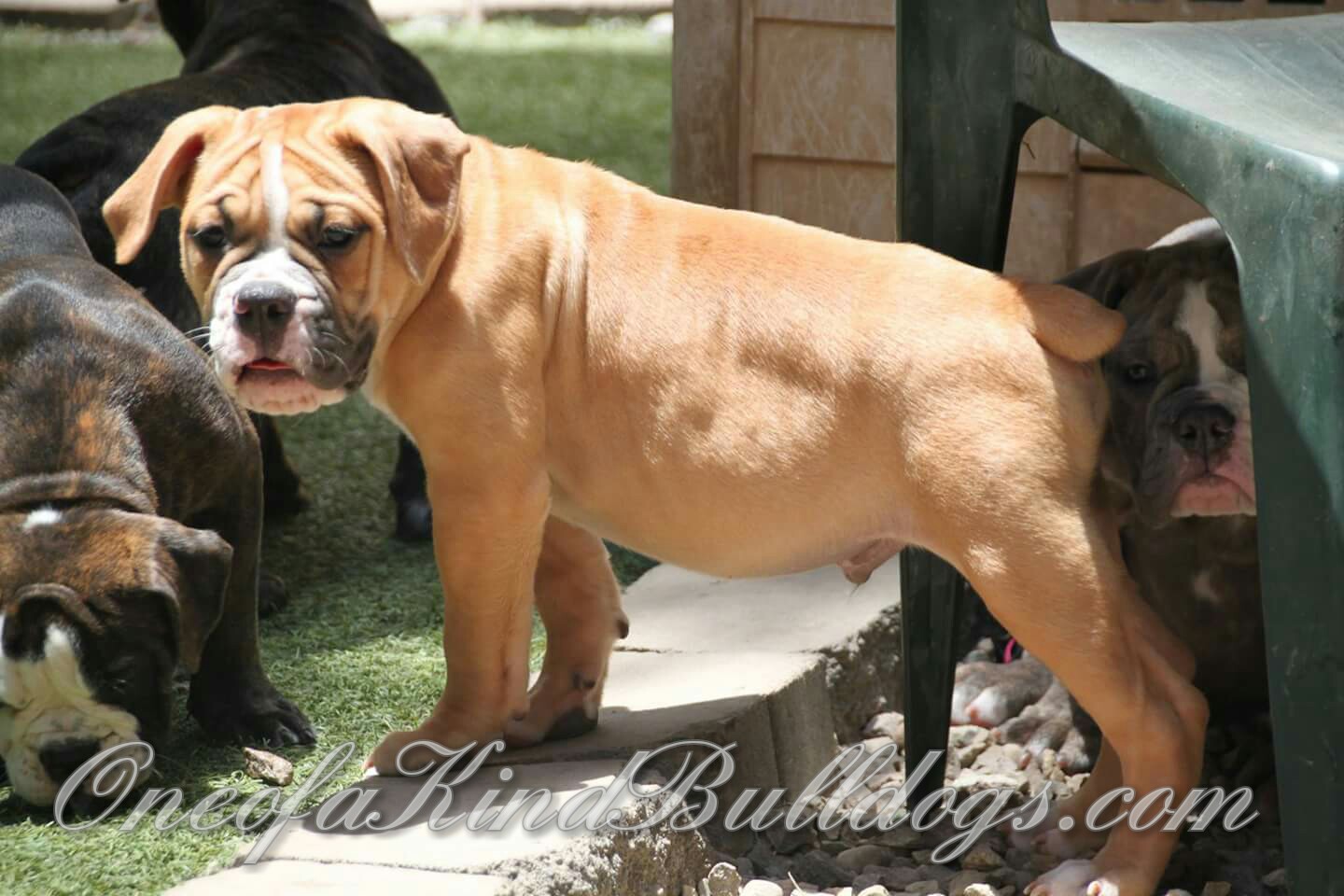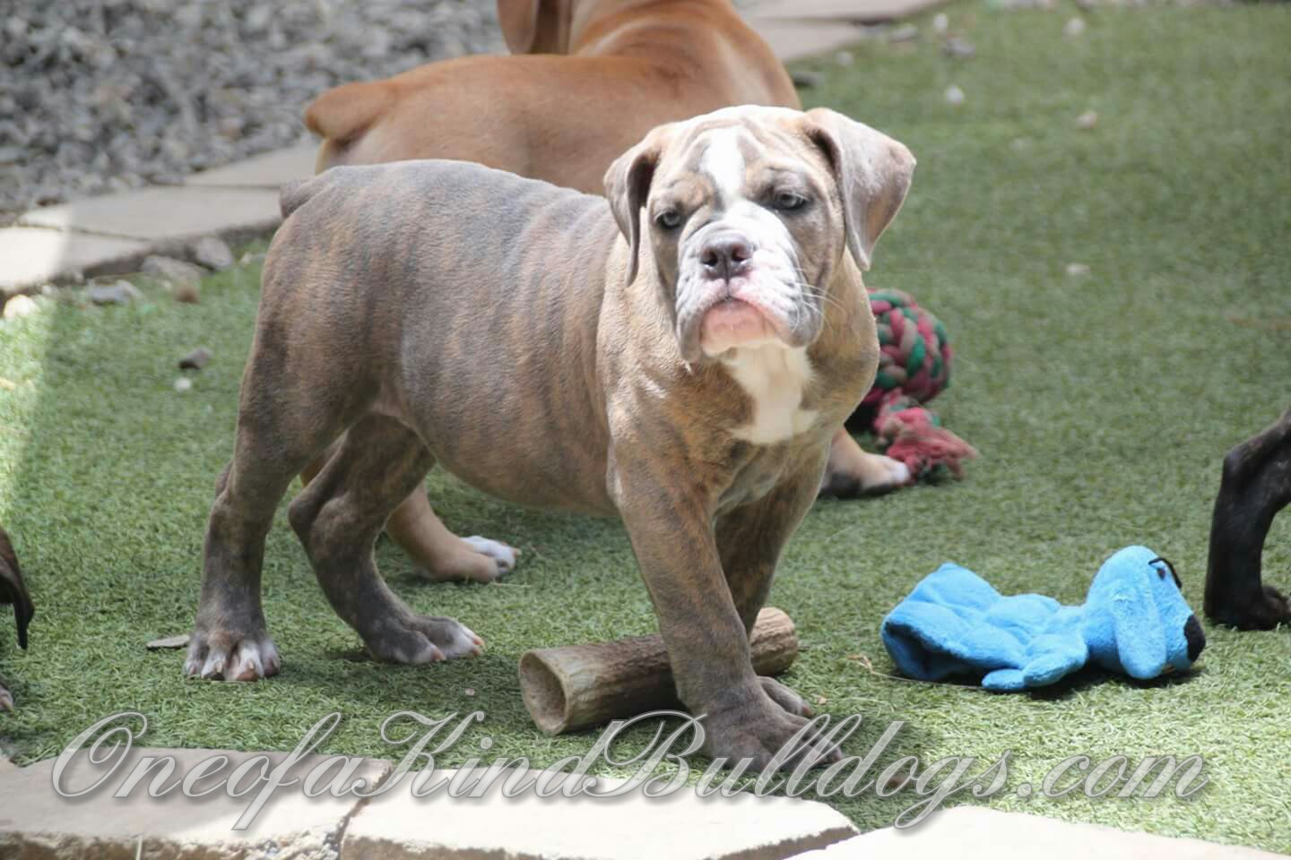 This is probably our very last litter with our Beef as he is now living the good life in Venice Beach with a repeat customer. We are more than impressed with this litter, we expect these pups to be some beefy Bulldogges. These puppies were born on 3-15-16 and are ready for loving pet homes now. Both Beef and Pretty were produced here at One of a Kind Bulldogs and some of the grandparents and great-grandparents were either produced here or owned by us.