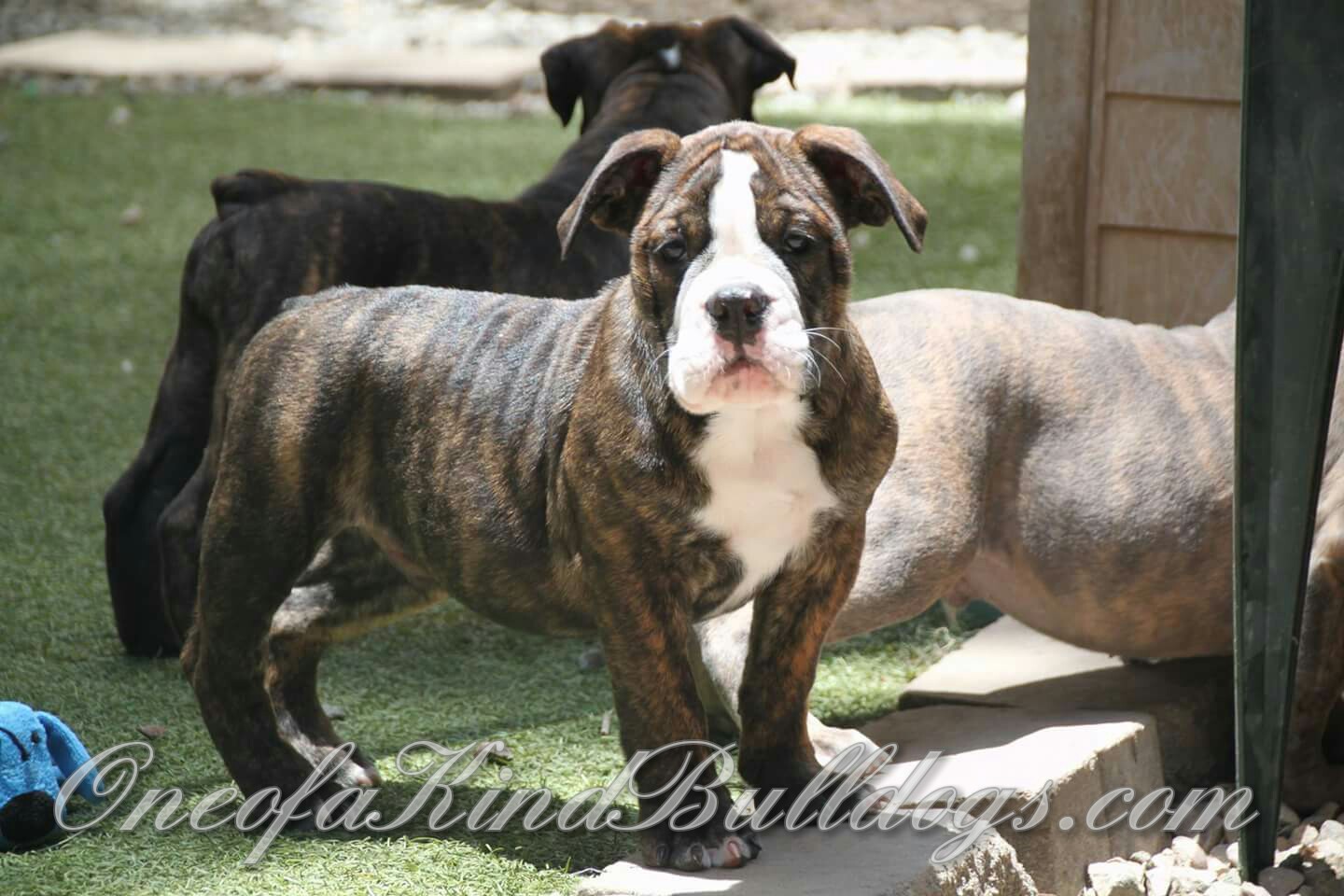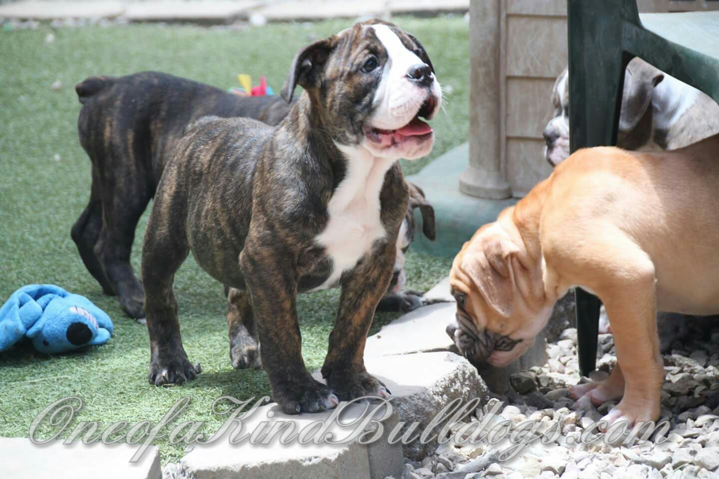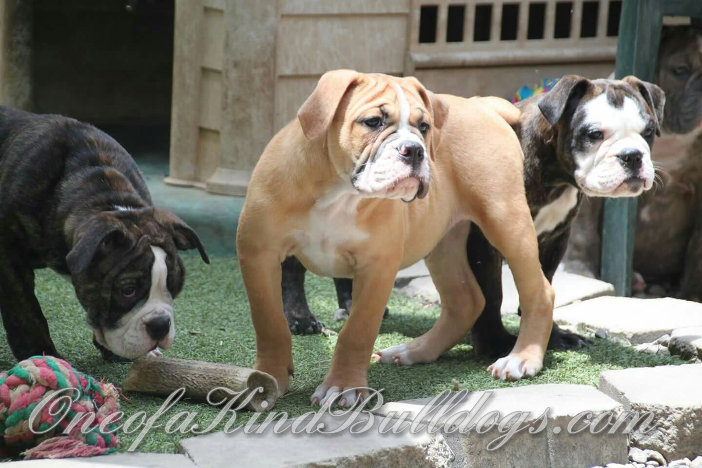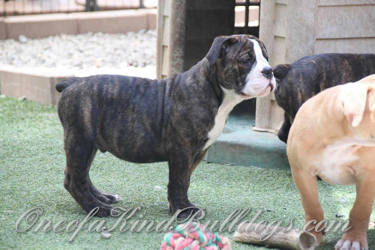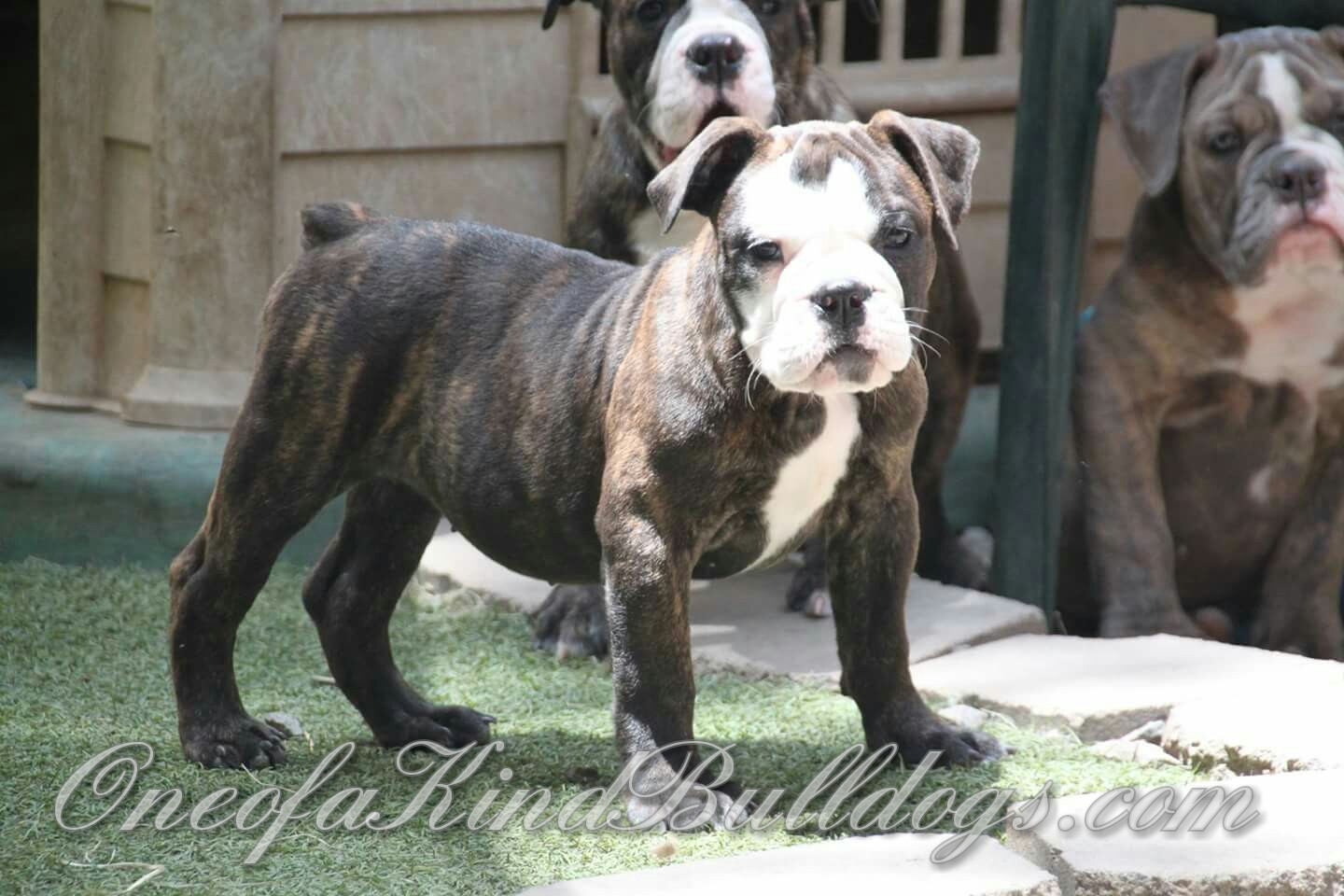 This is probably our very last litter with our Beef as he is now living the good life in Venice Beach with a repeat customer. We are more than impressed with this litter, we expect these pups to be some beefy Bulldogges. These puppies were born on 3-15-16 and are ready for loving pet homes now. Both Beef and Pretty were produced here at One of a Kind Bulldogs and some of the grandparents and great-grandparents were either produced here or owned by us.