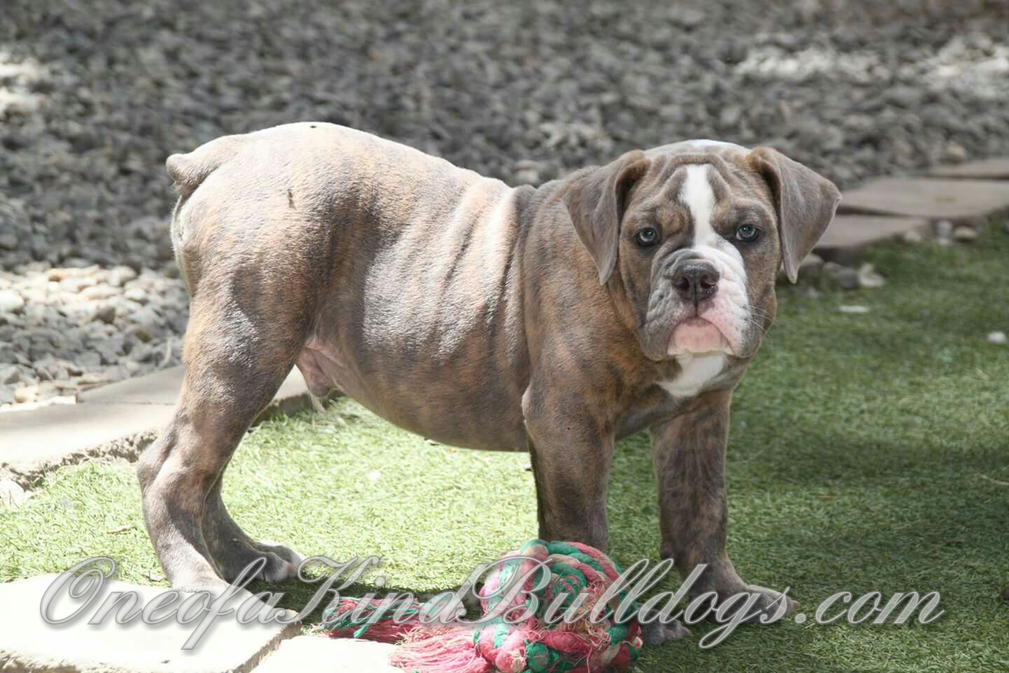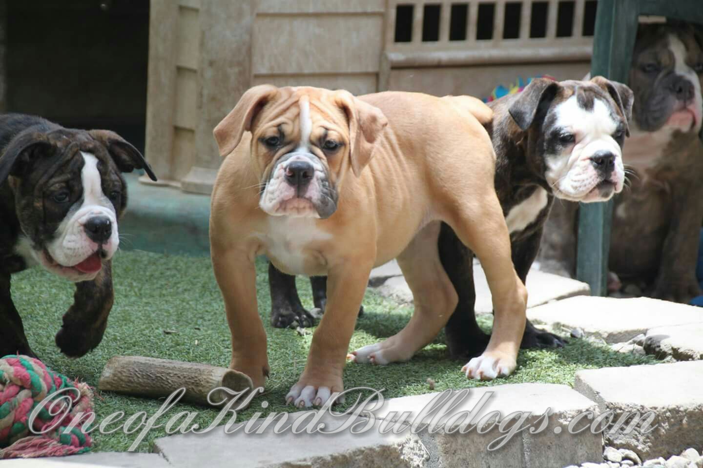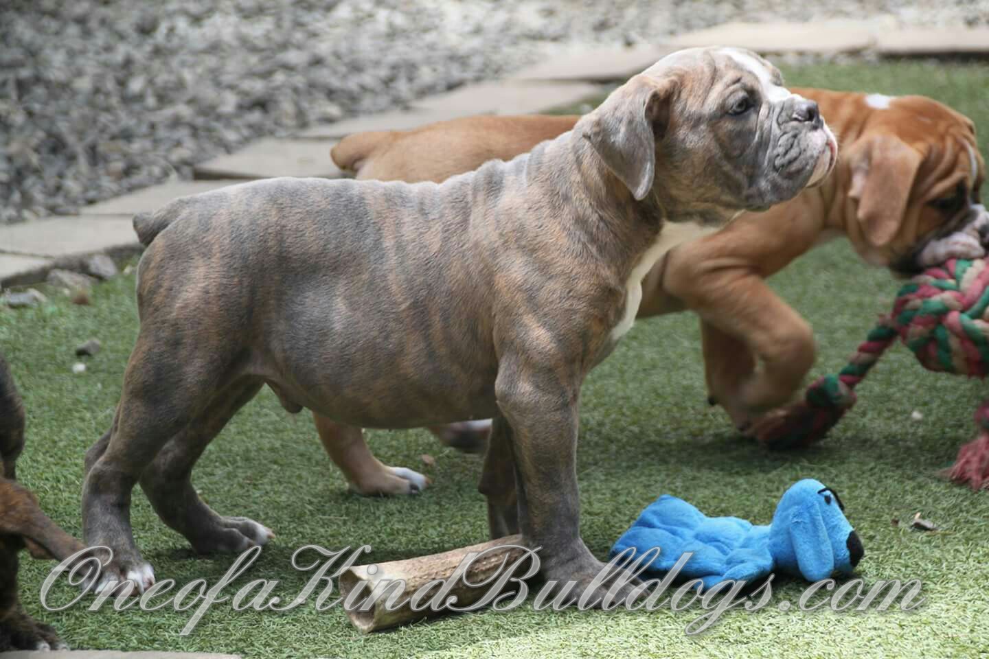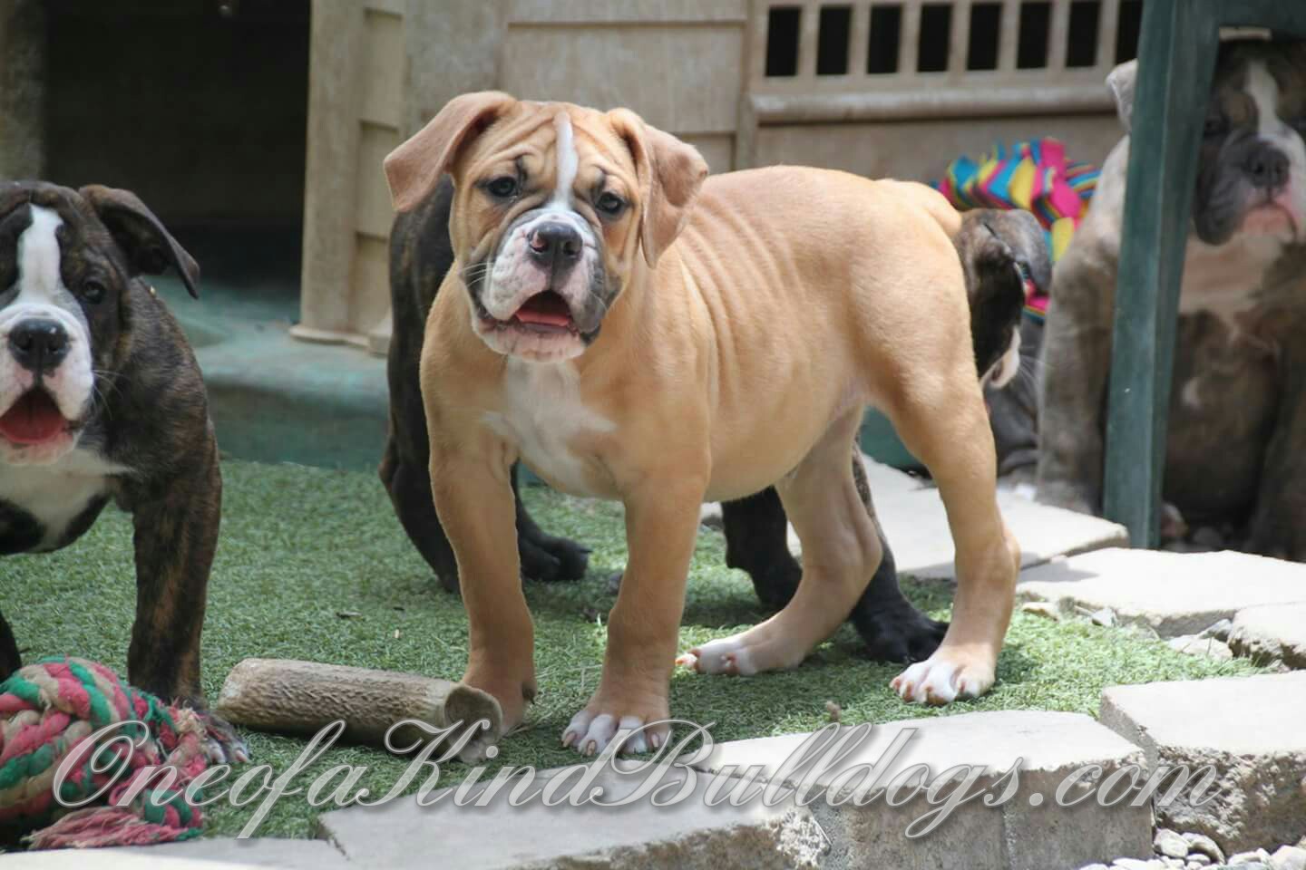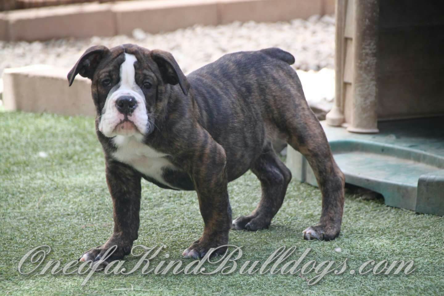 This is probably our very last litter with our Beef as he is now living the good life in Venice Beach with a repeat customer. We are more than impressed with this litter, we expect these pups to be some beefy Bulldogges. These puppies were born on 3-15-16 and are ready for loving pet homes now. Both Beef and Pretty were produced here at One of a Kind Bulldogs and some of the grandparents and great-grandparents were either produced here or owned by us.