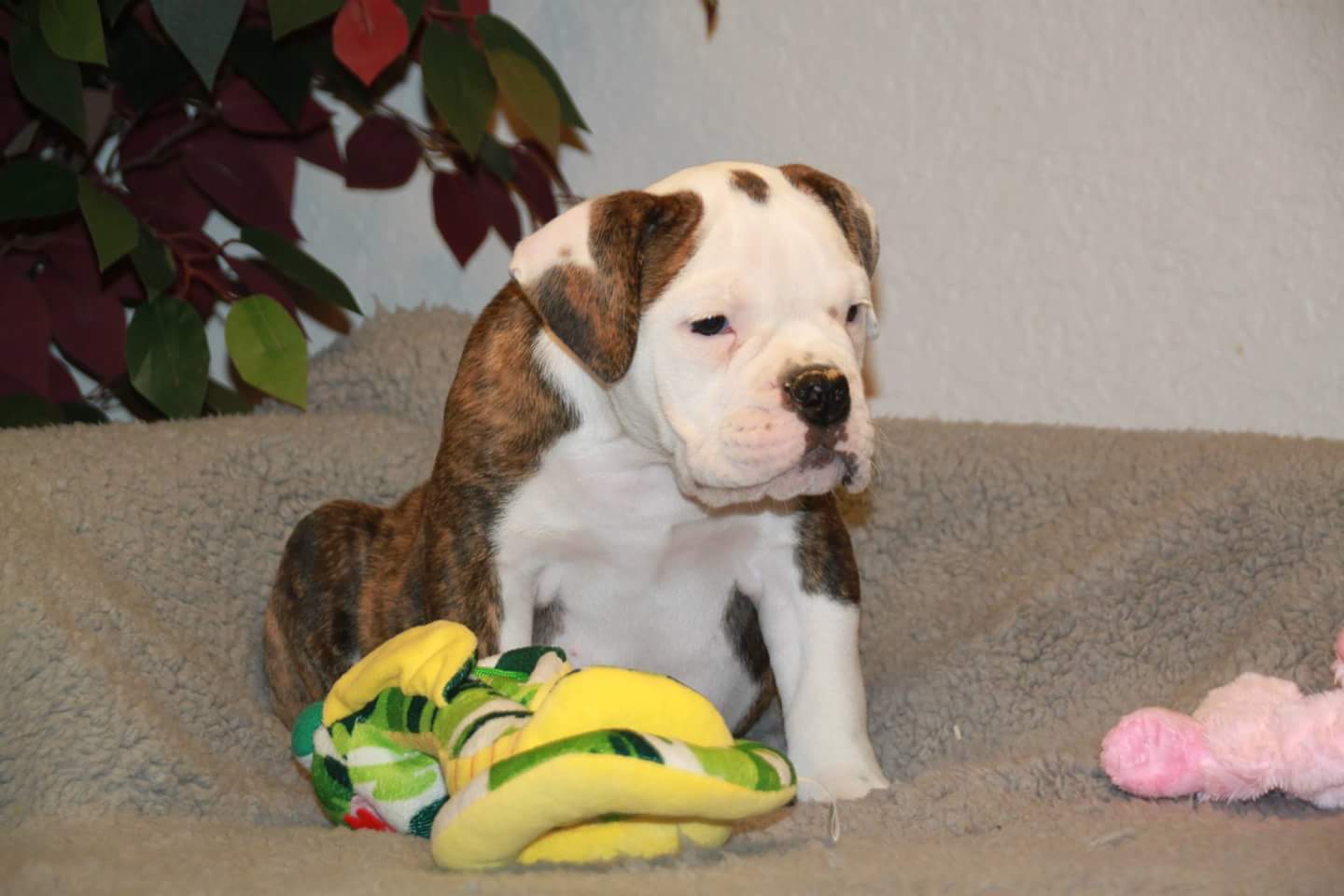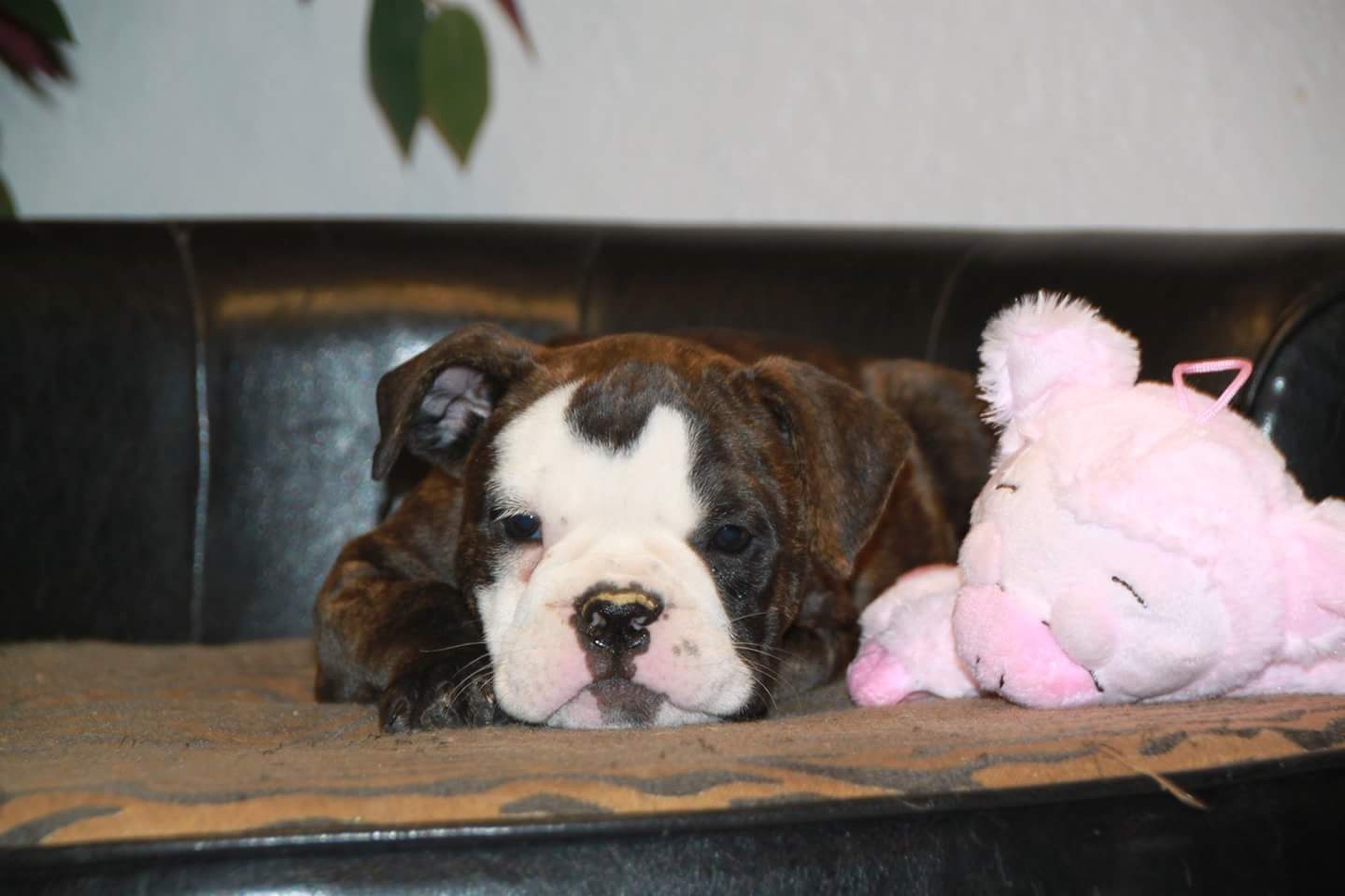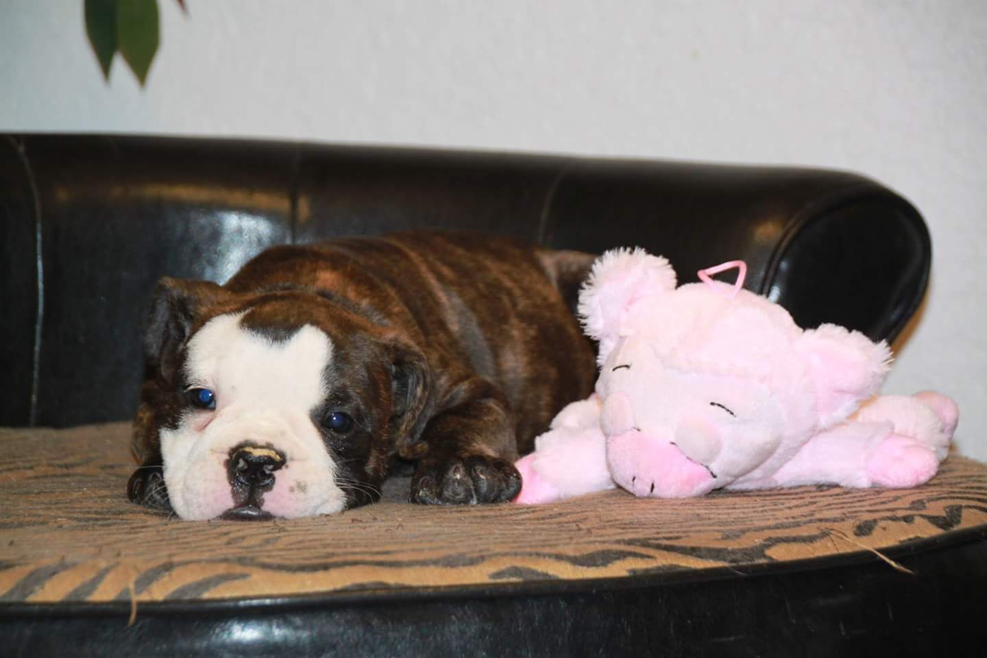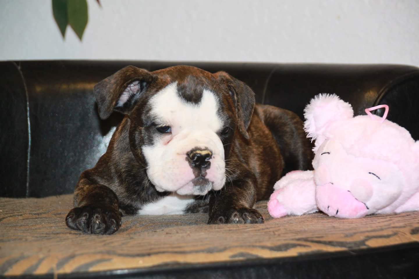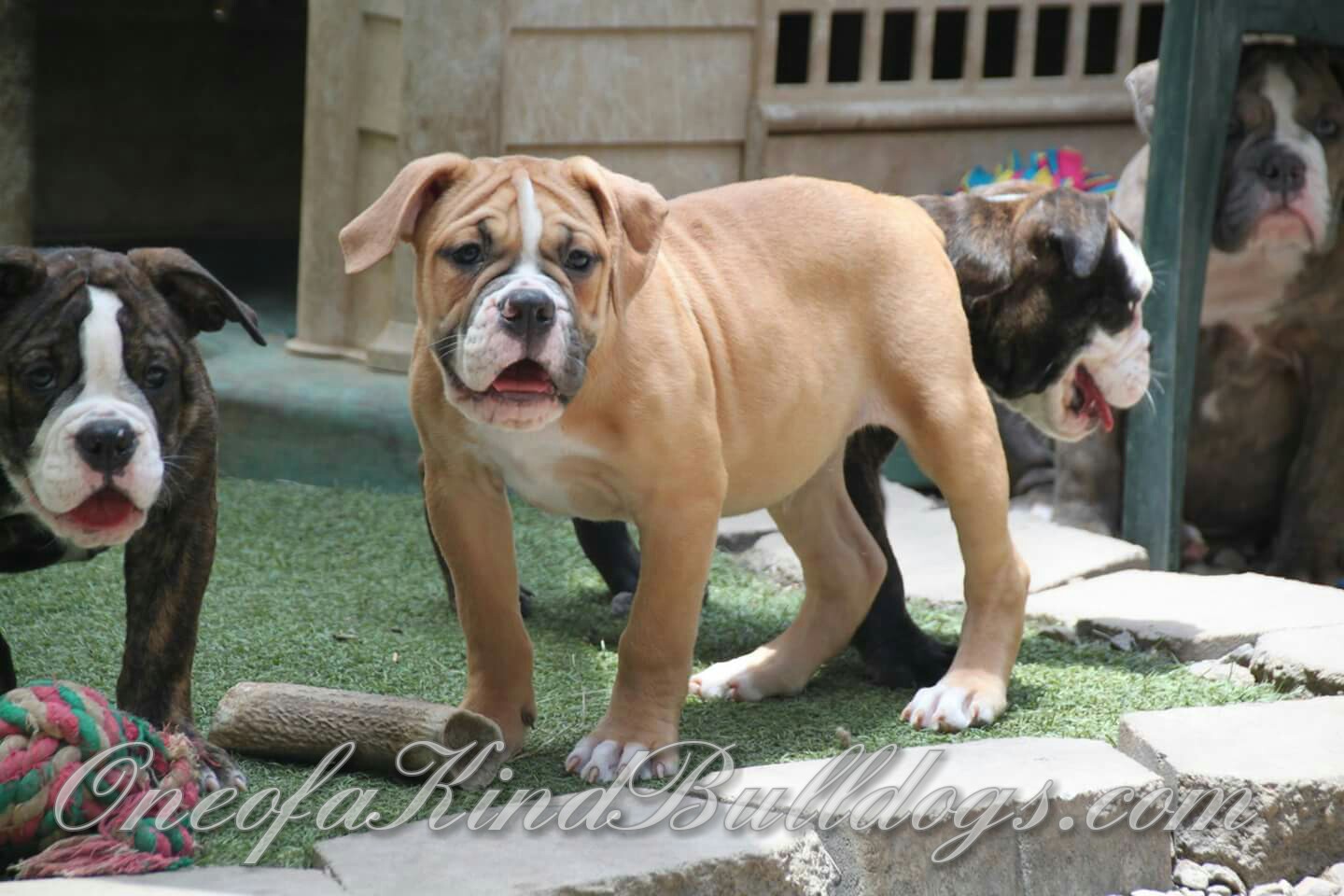 This is probably our very last litter with our Beef as he is now living the good life in Venice Beach with a repeat customer. We are more than impressed with this litter, we expect these pups to be some beefy Bulldogges. These puppies were born on 3-15-16 and are ready for loving pet homes now. Both Beef and Pretty were produced here at One of a Kind Bulldogs and some of the grandparents and great-grandparents were either produced here or owned by us.