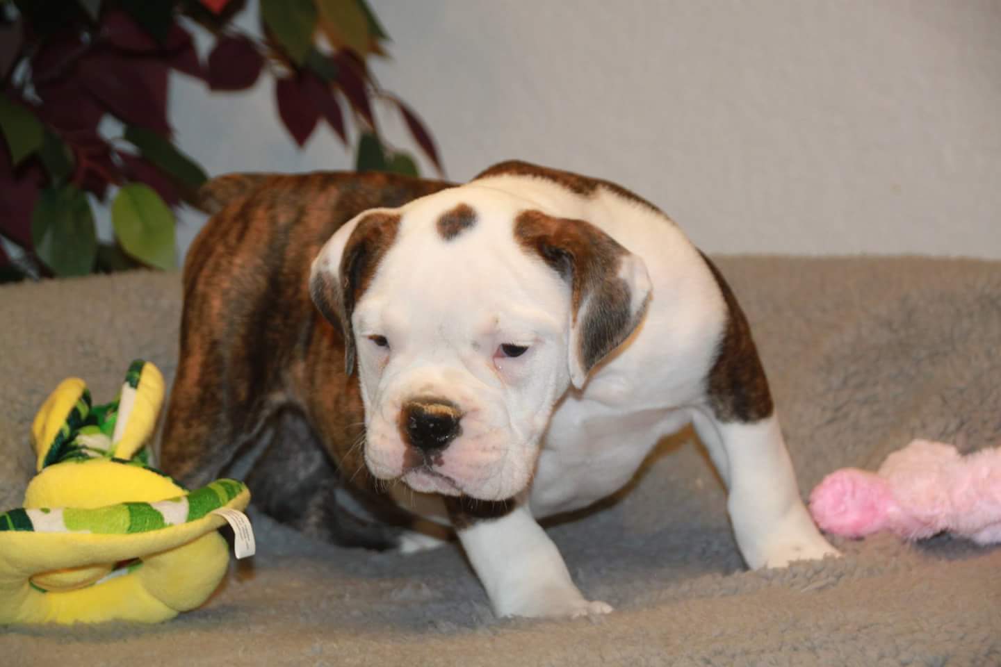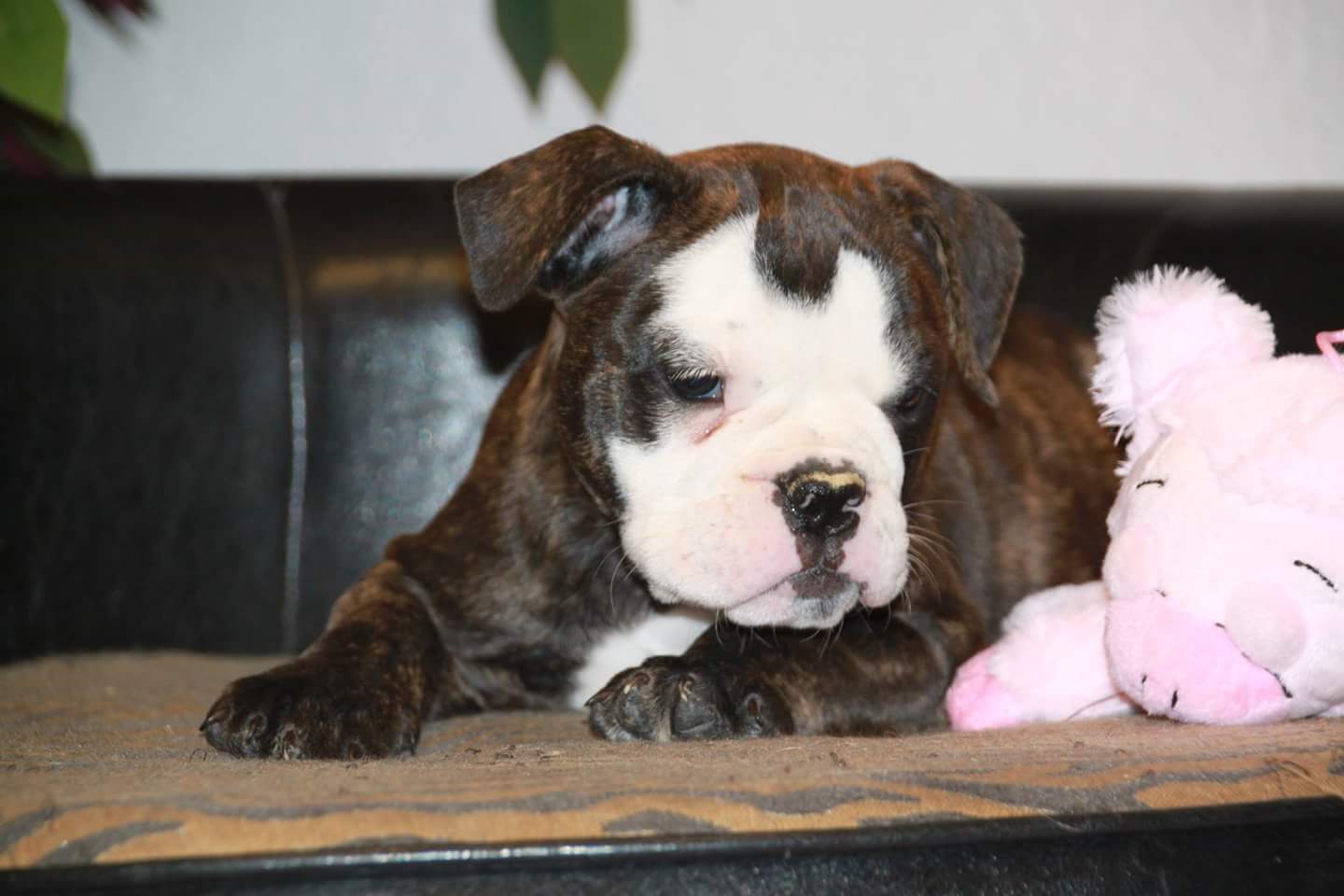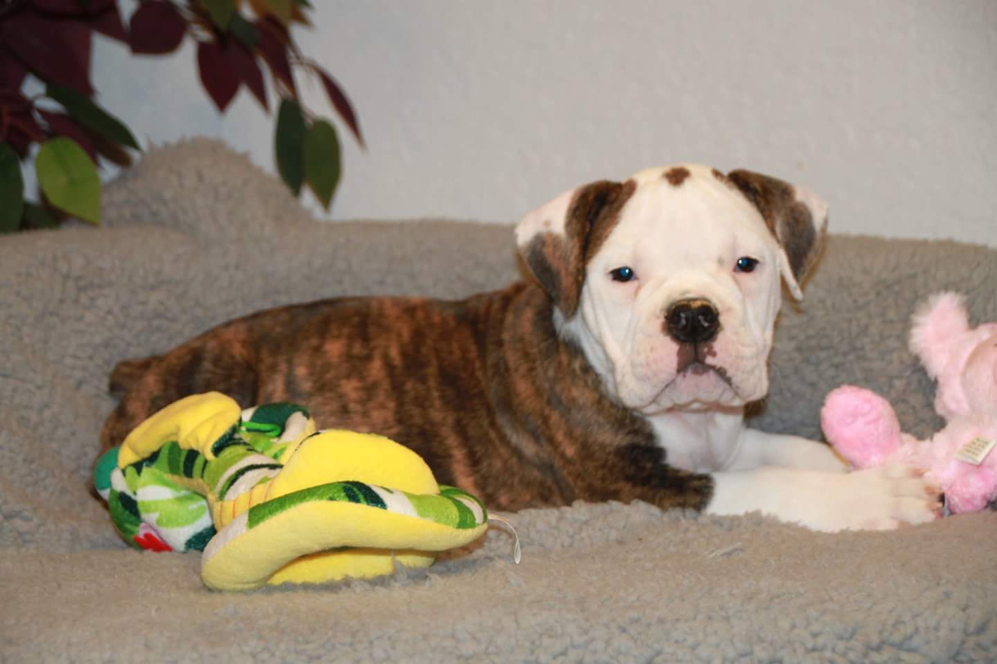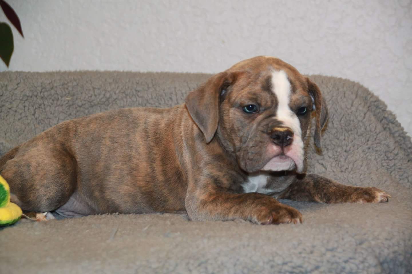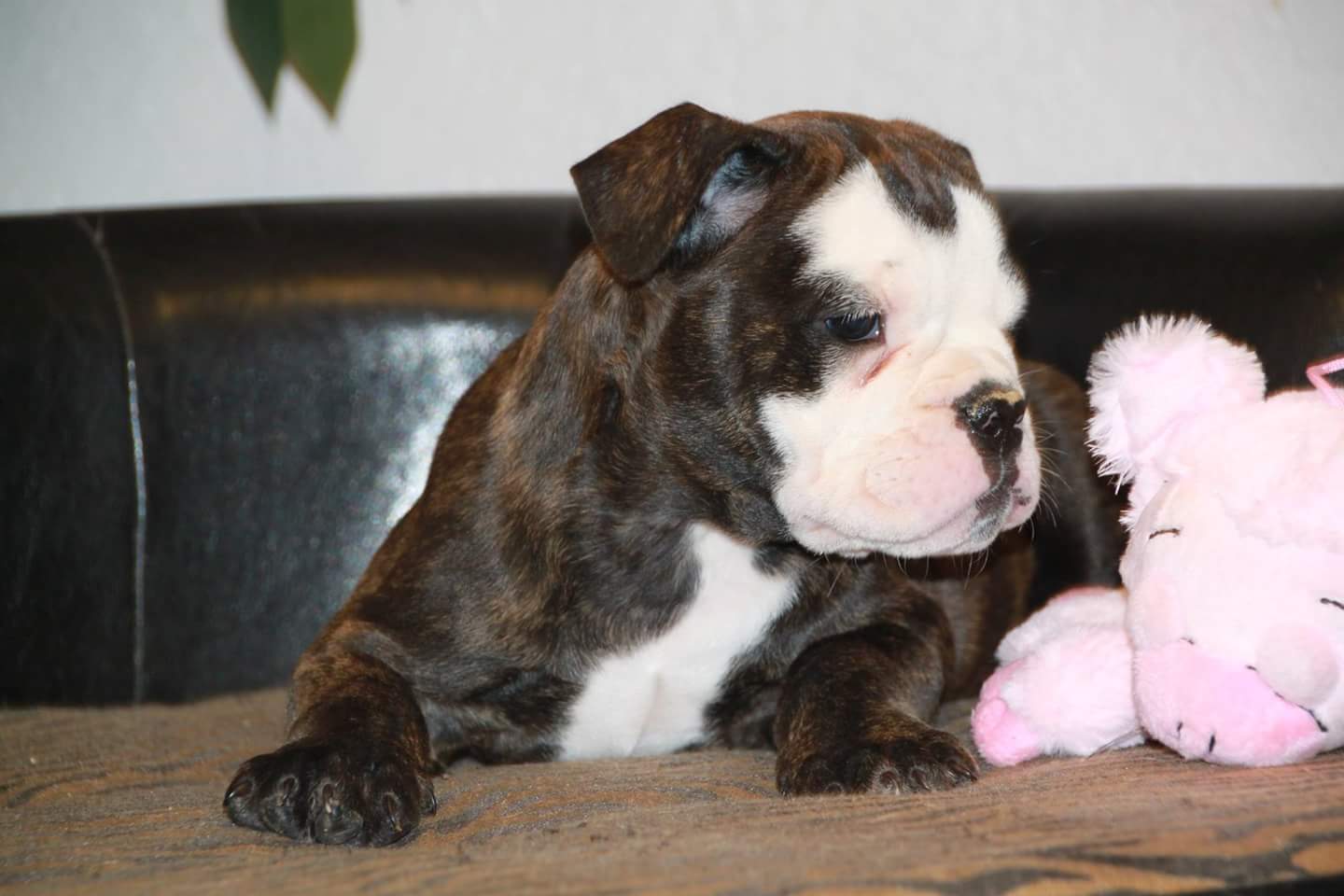 This is probably our very last litter with our Beef as he is now living the good life in Venice Beach with a repeat customer. We are more than impressed with this litter, we expect these pups to be some beefy Bulldogges. These puppies were born on 3-15-16 and are ready for loving pet homes now. Both Beef and Pretty were produced here at One of a Kind Bulldogs and some of the grandparents and great-grandparents were either produced here or owned by us.