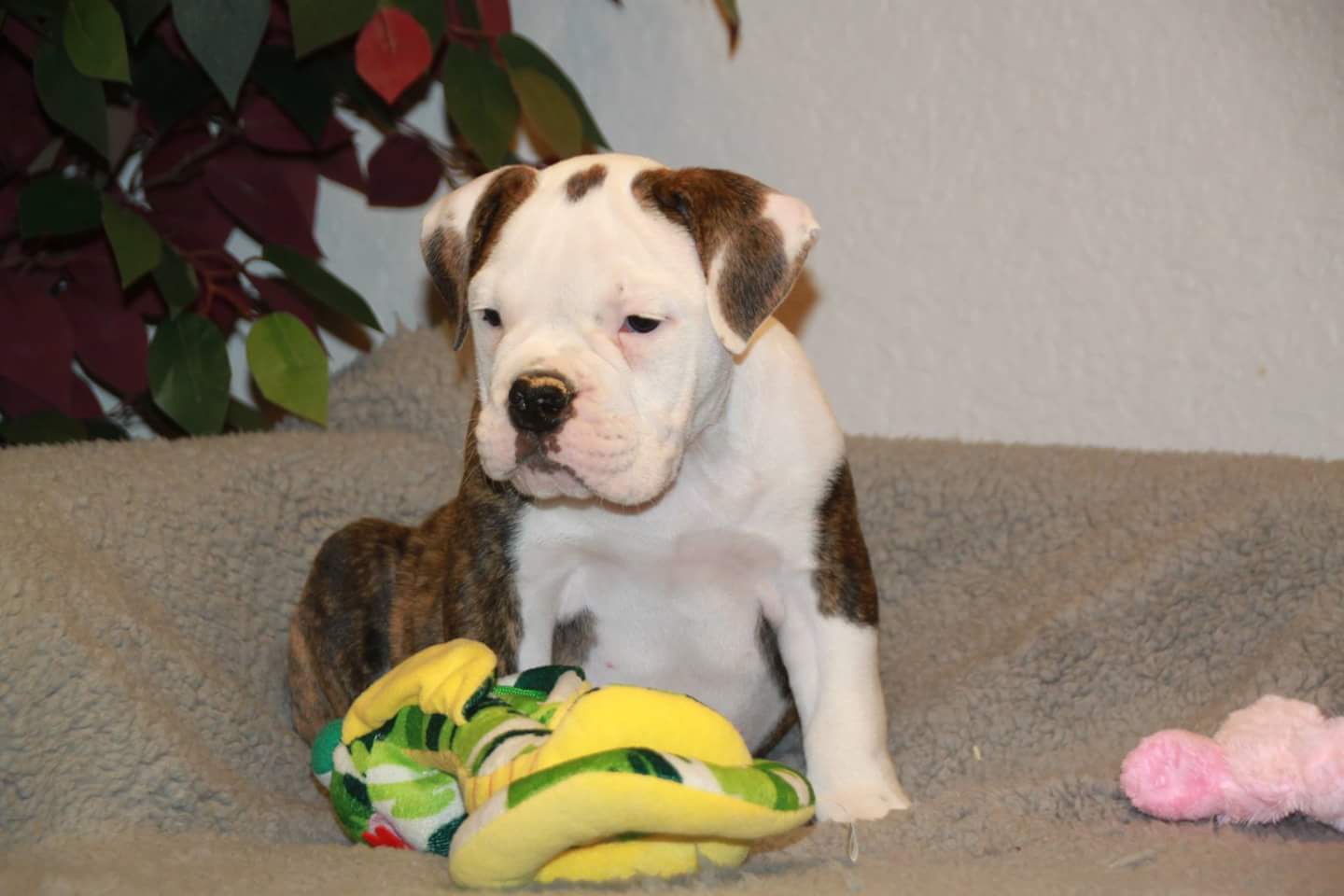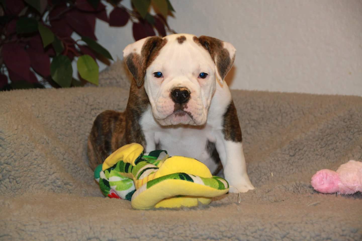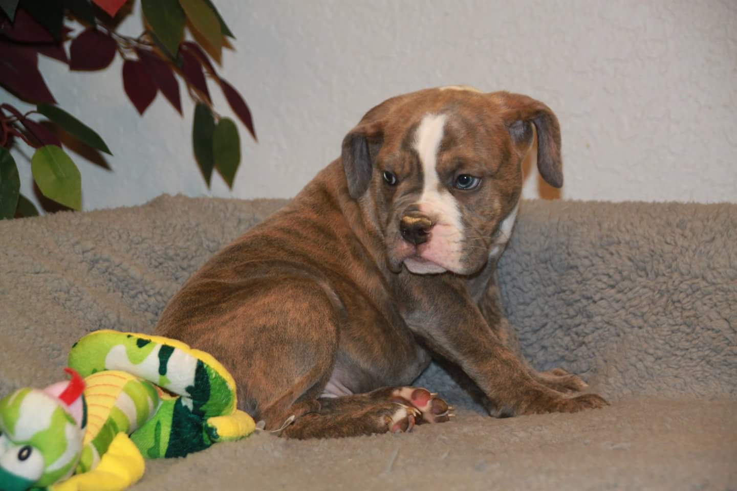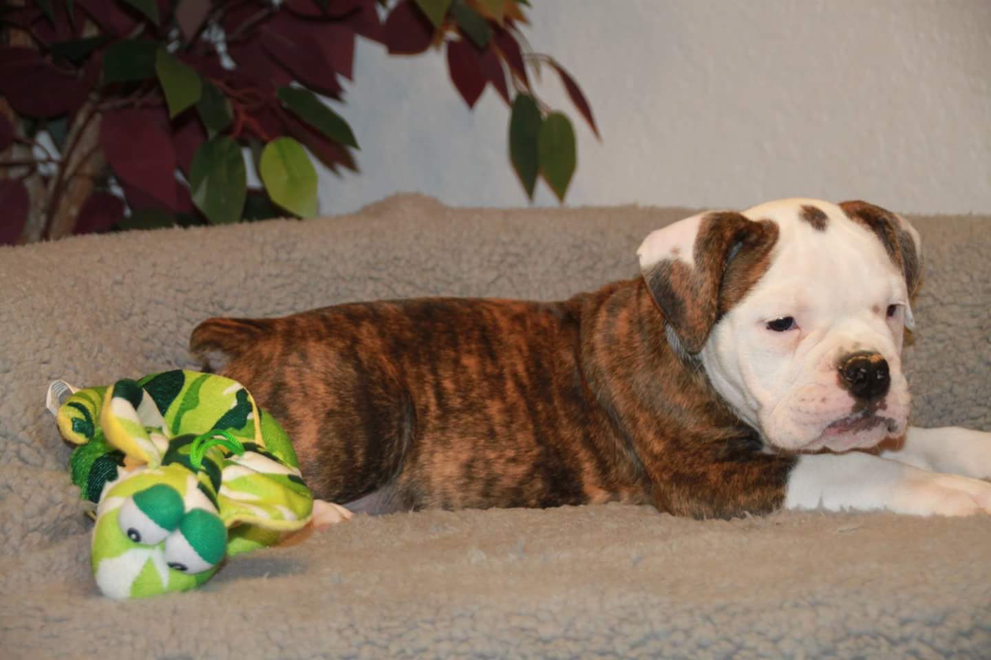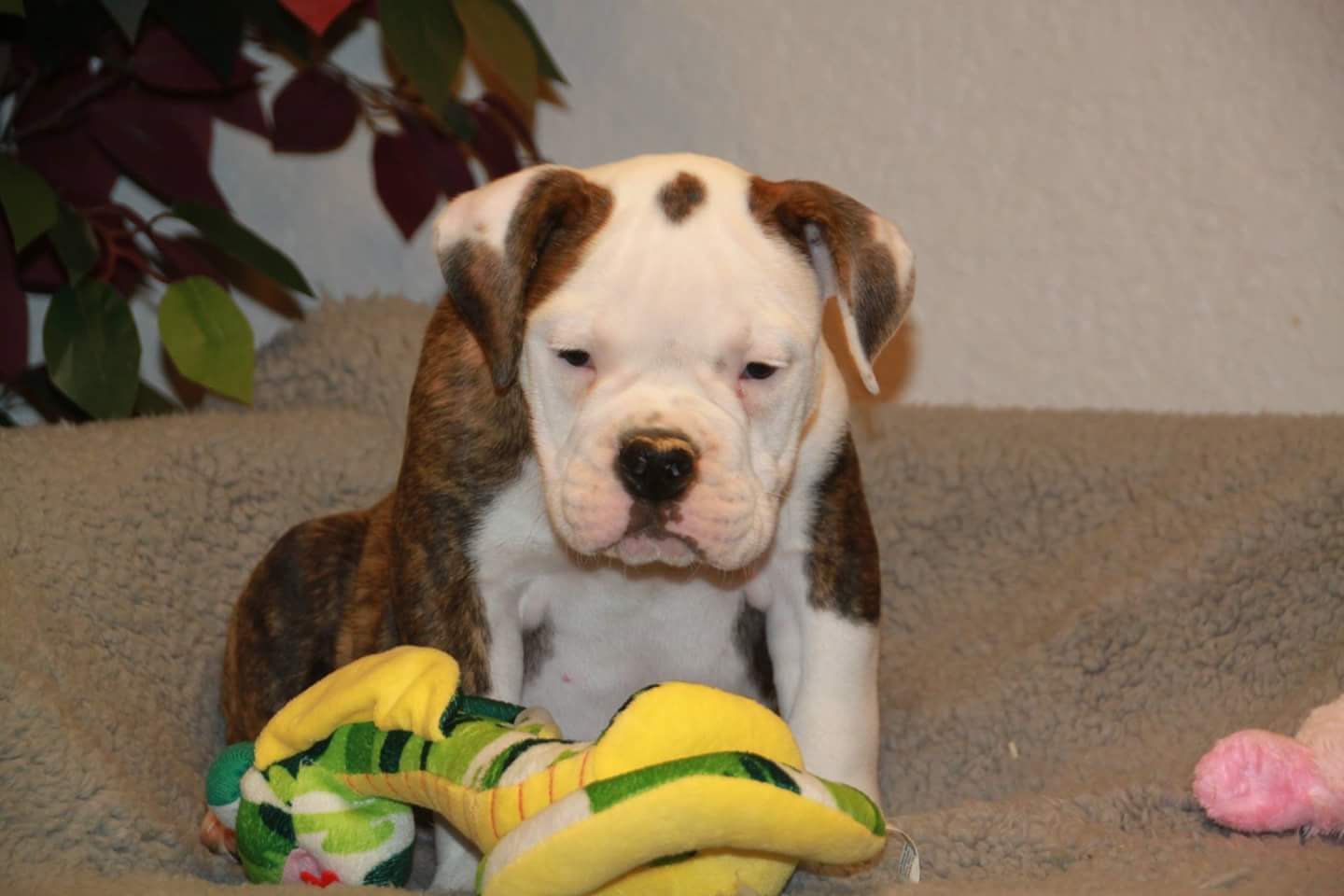 This is probably our very last litter with our Beef as he is now living the good life in Venice Beach with a repeat customer. We are more than impressed with this litter, we expect these pups to be some beefy Bulldogges. These puppies were born on 3-15-16 and are ready for loving pet homes now. Both Beef and Pretty were produced here at One of a Kind Bulldogs and some of the grandparents and great-grandparents were either produced here or owned by us.