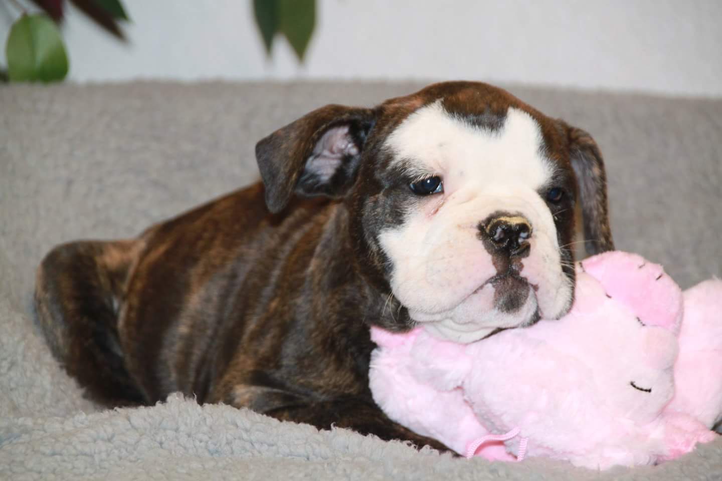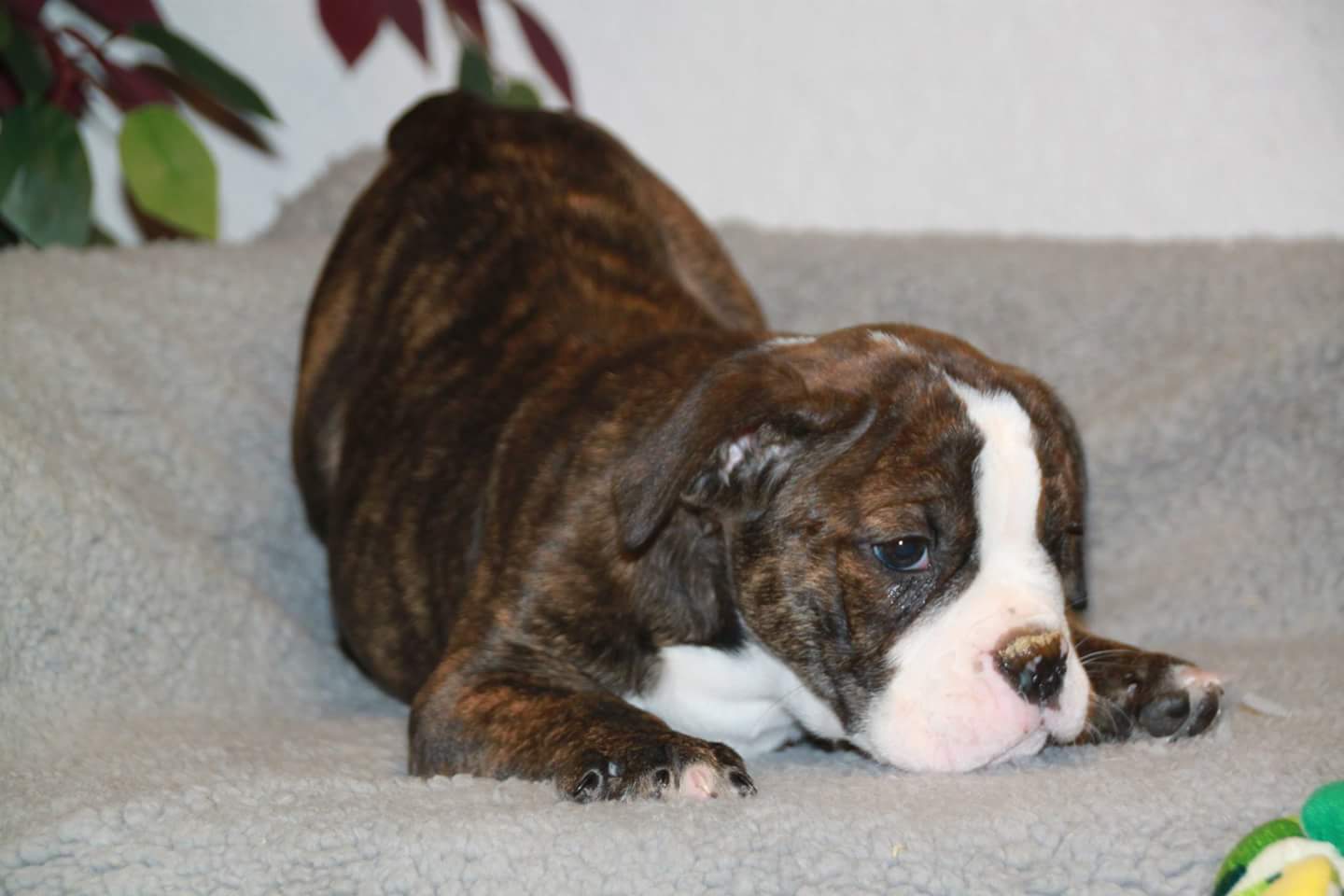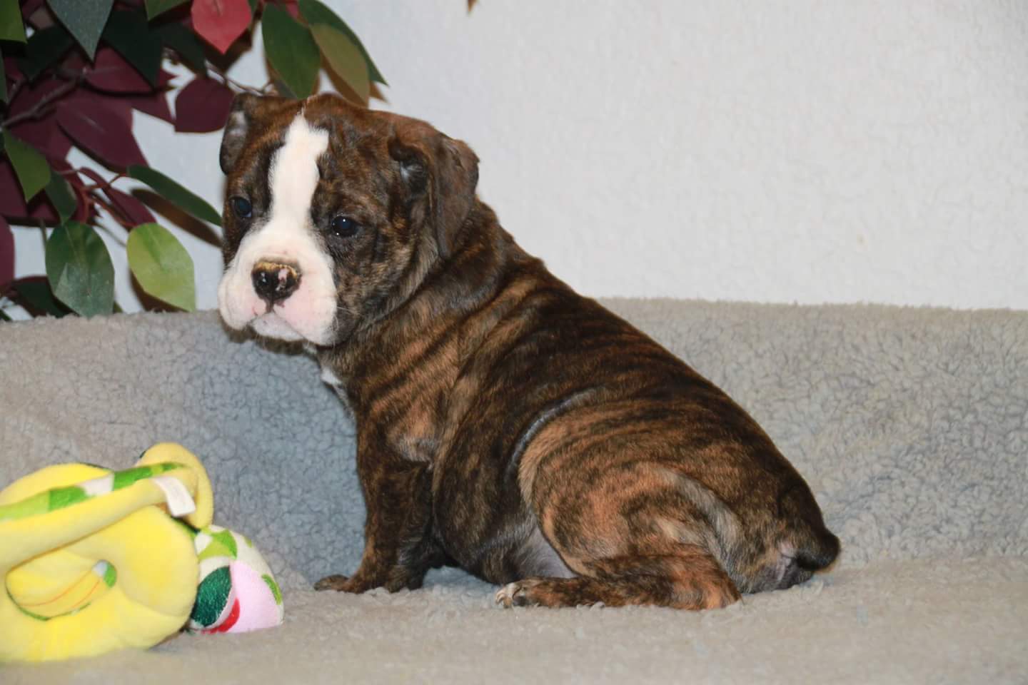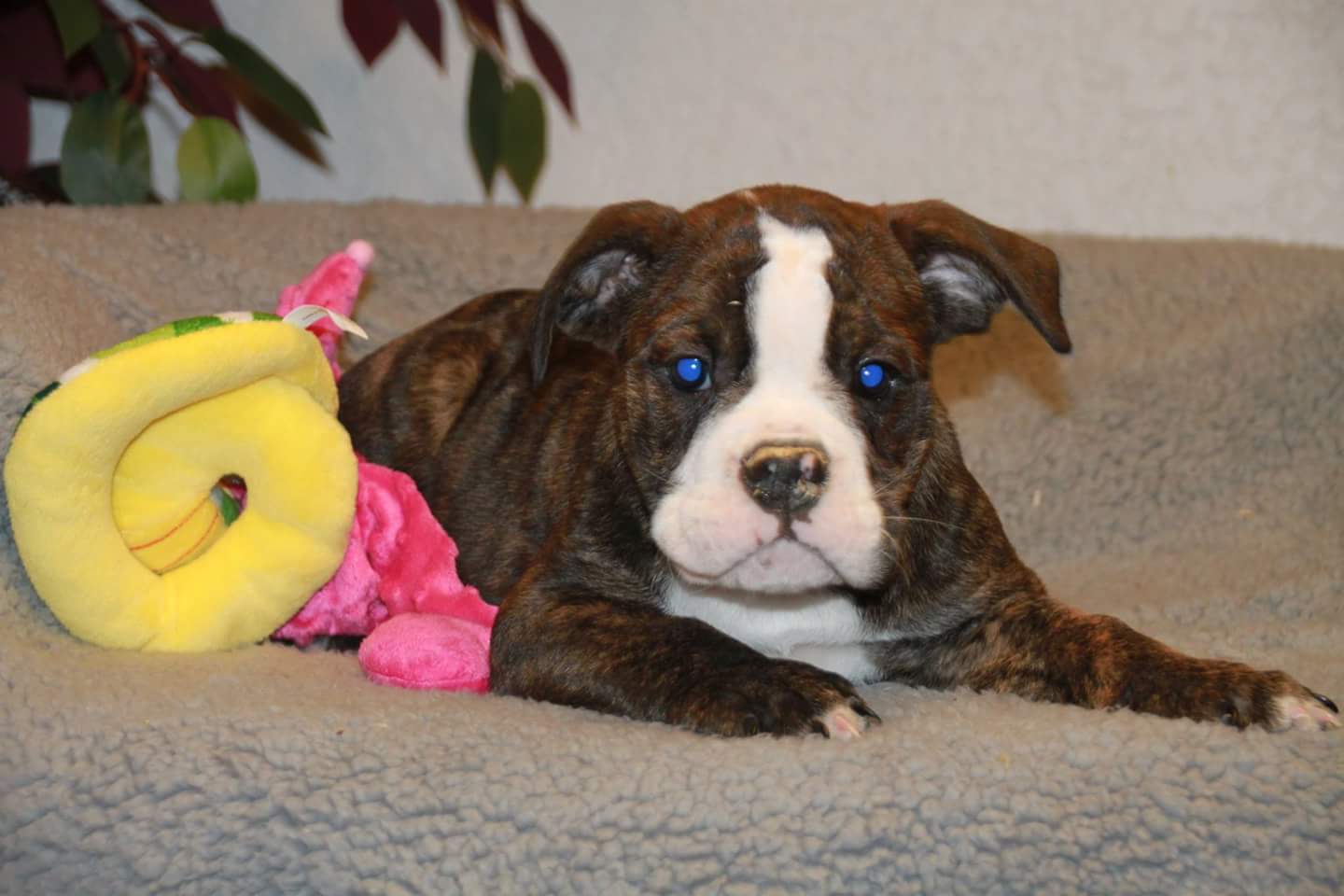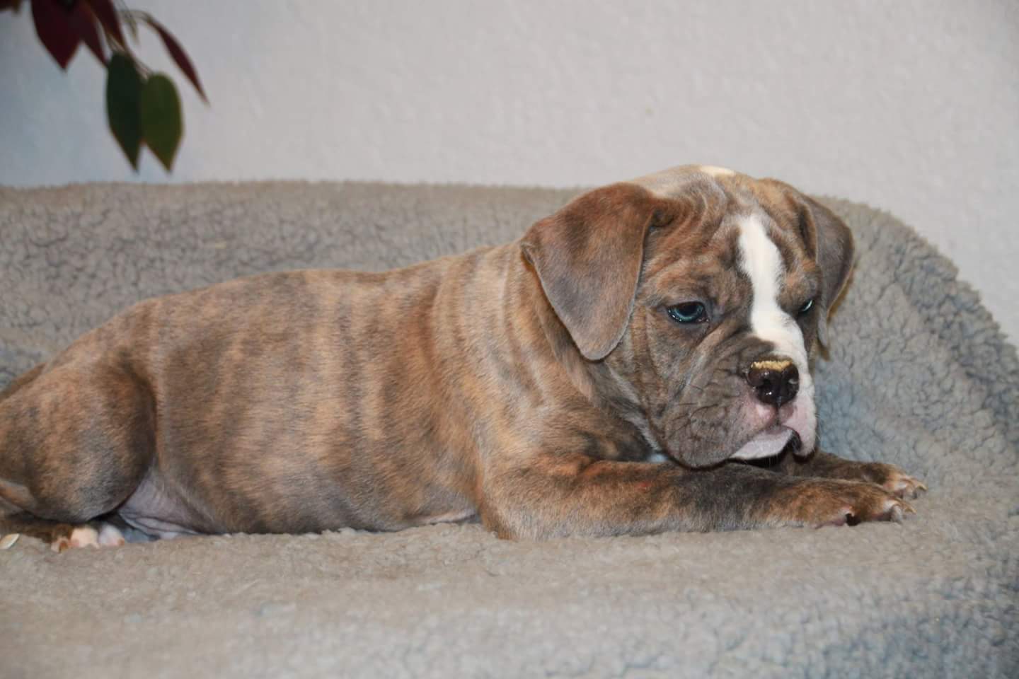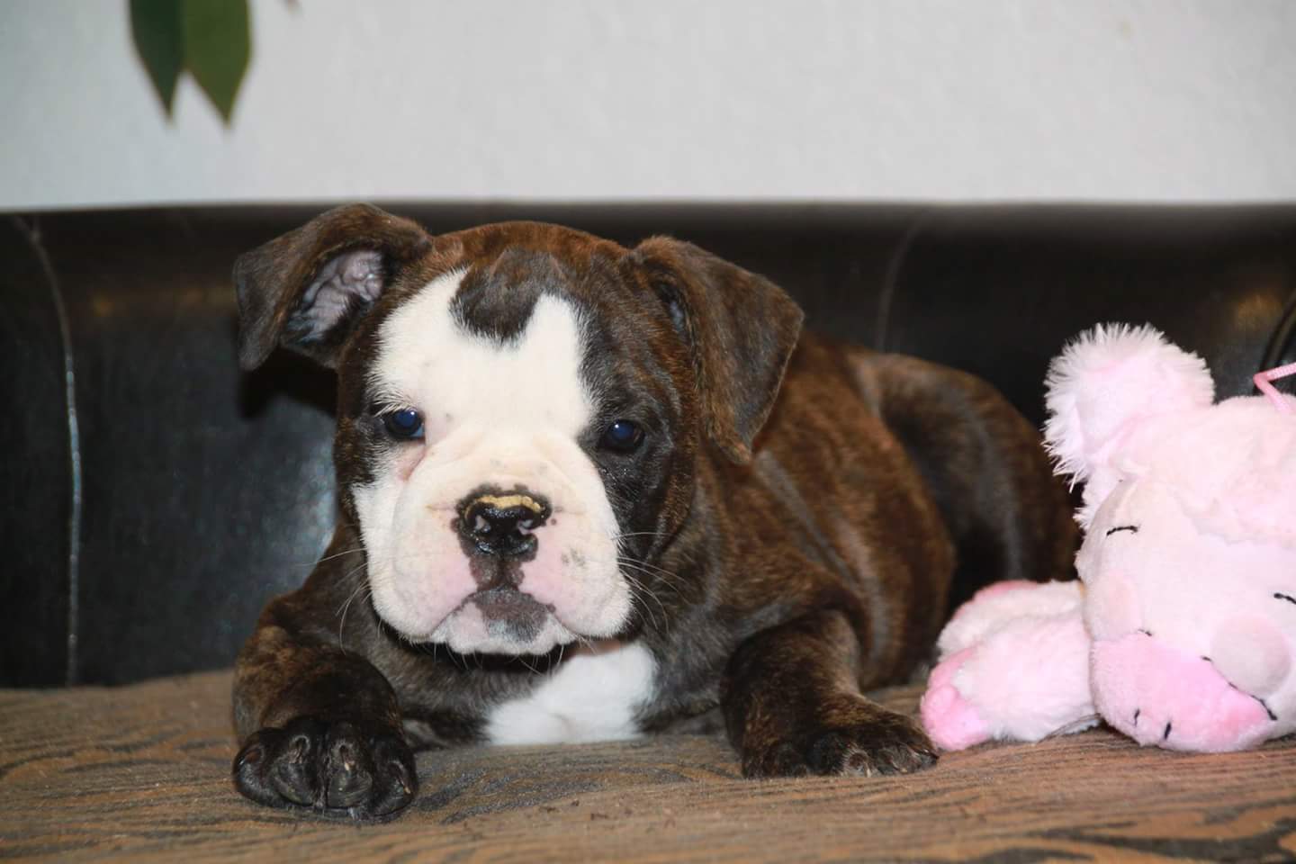 This is probably our very last litter with our Beef as he is now living the good life in Venice Beach with a repeat customer. We are more than impressed with this litter, we expect these pups to be some beefy Bulldogges. These puppies were born on 3-15-16 and are ready for loving pet homes now. Both Beef and Pretty were produced here at One of a Kind Bulldogs and some of the grandparents and great-grandparents were either produced here or owned by us.