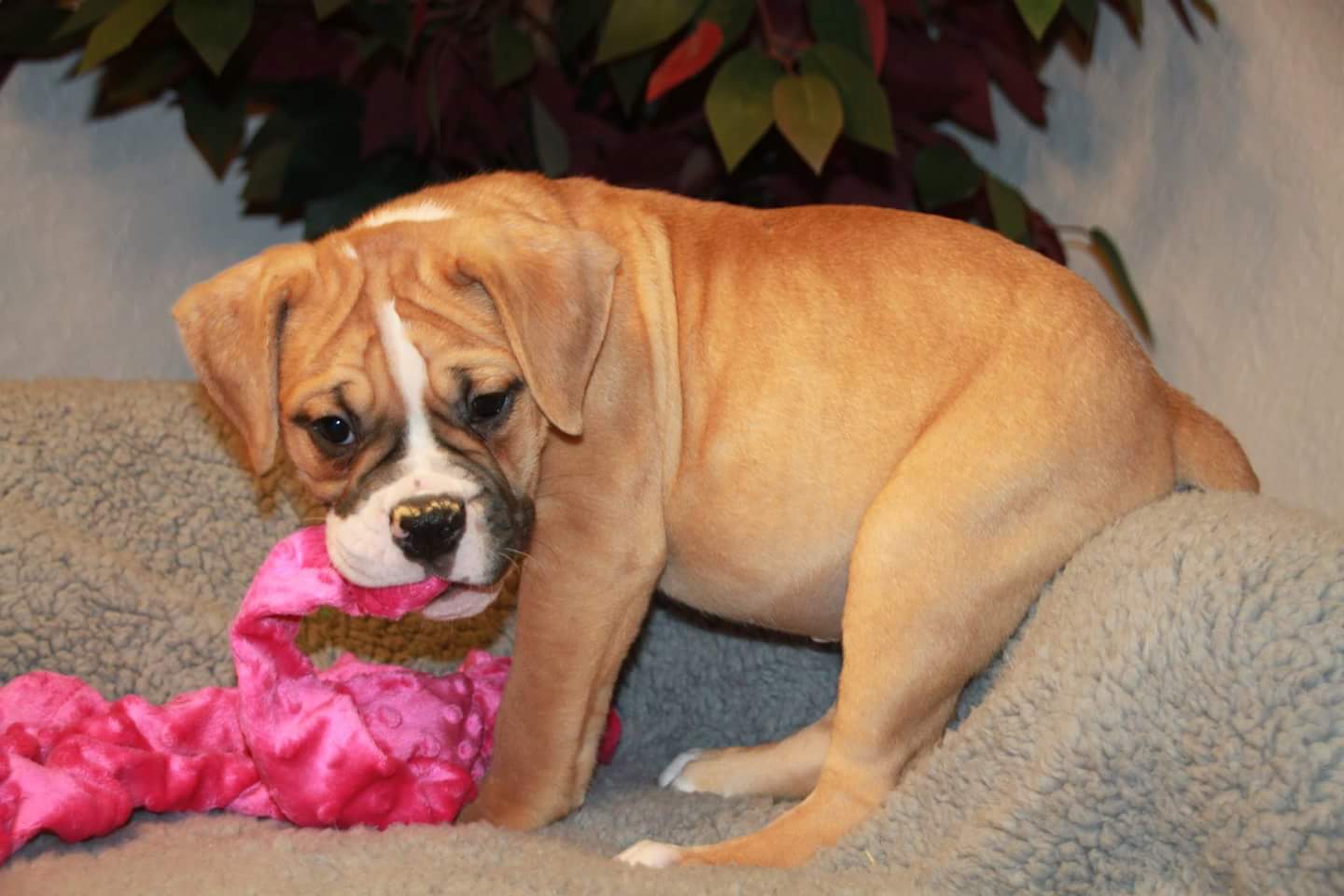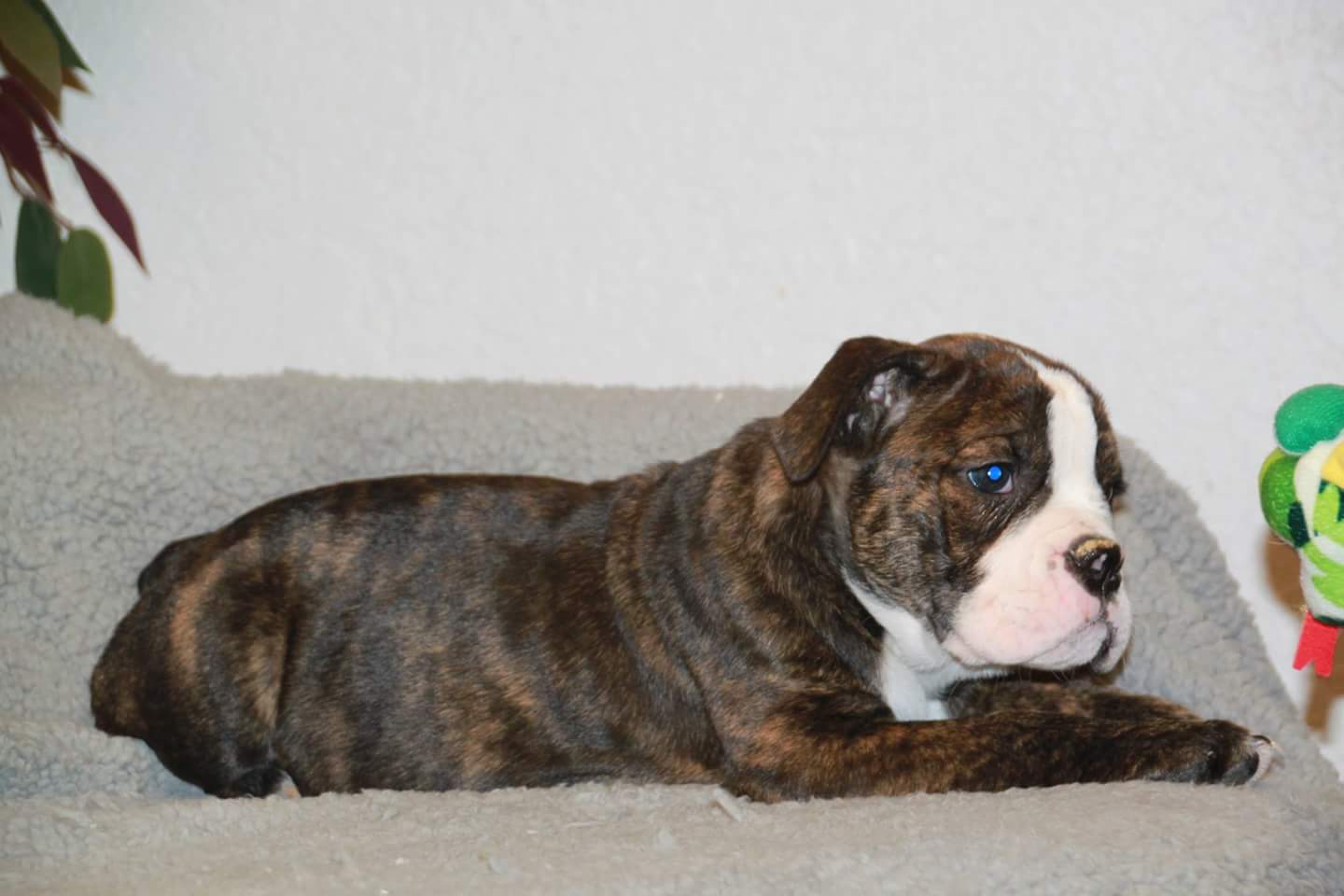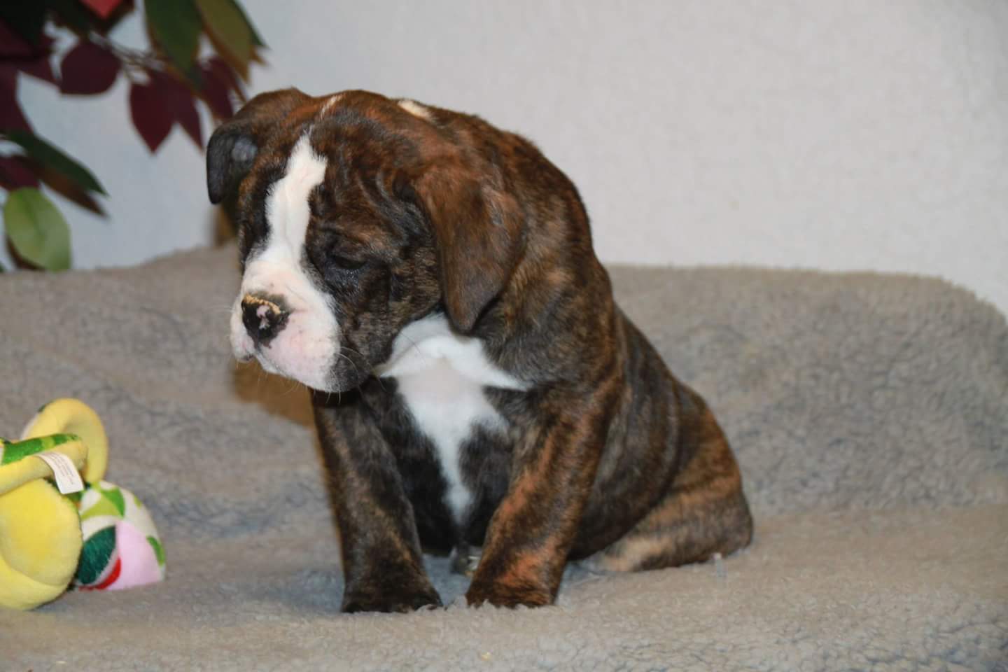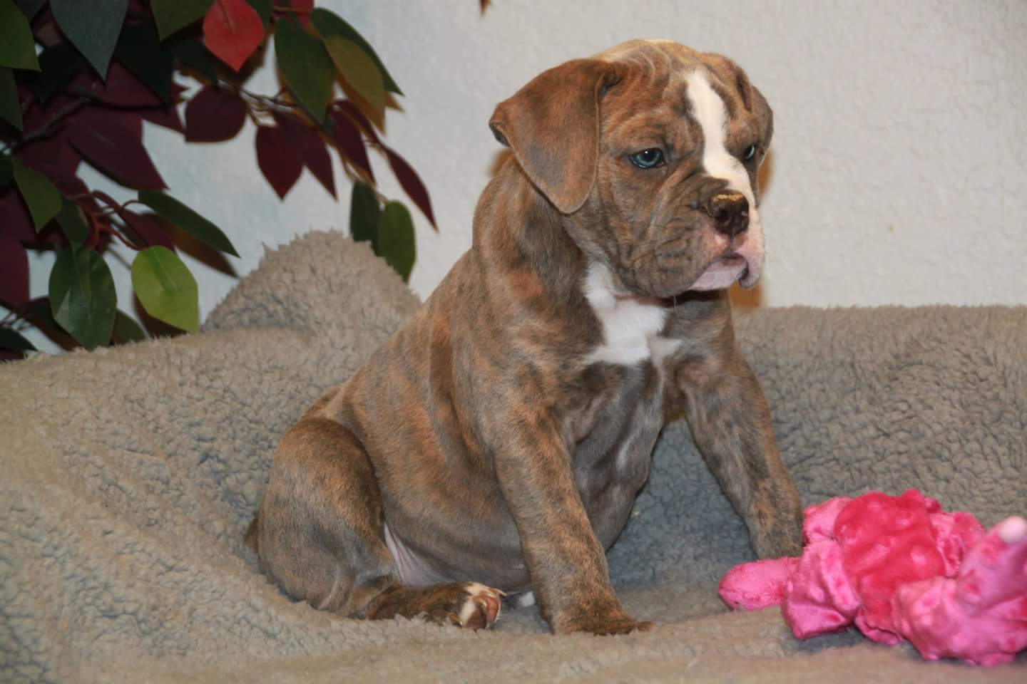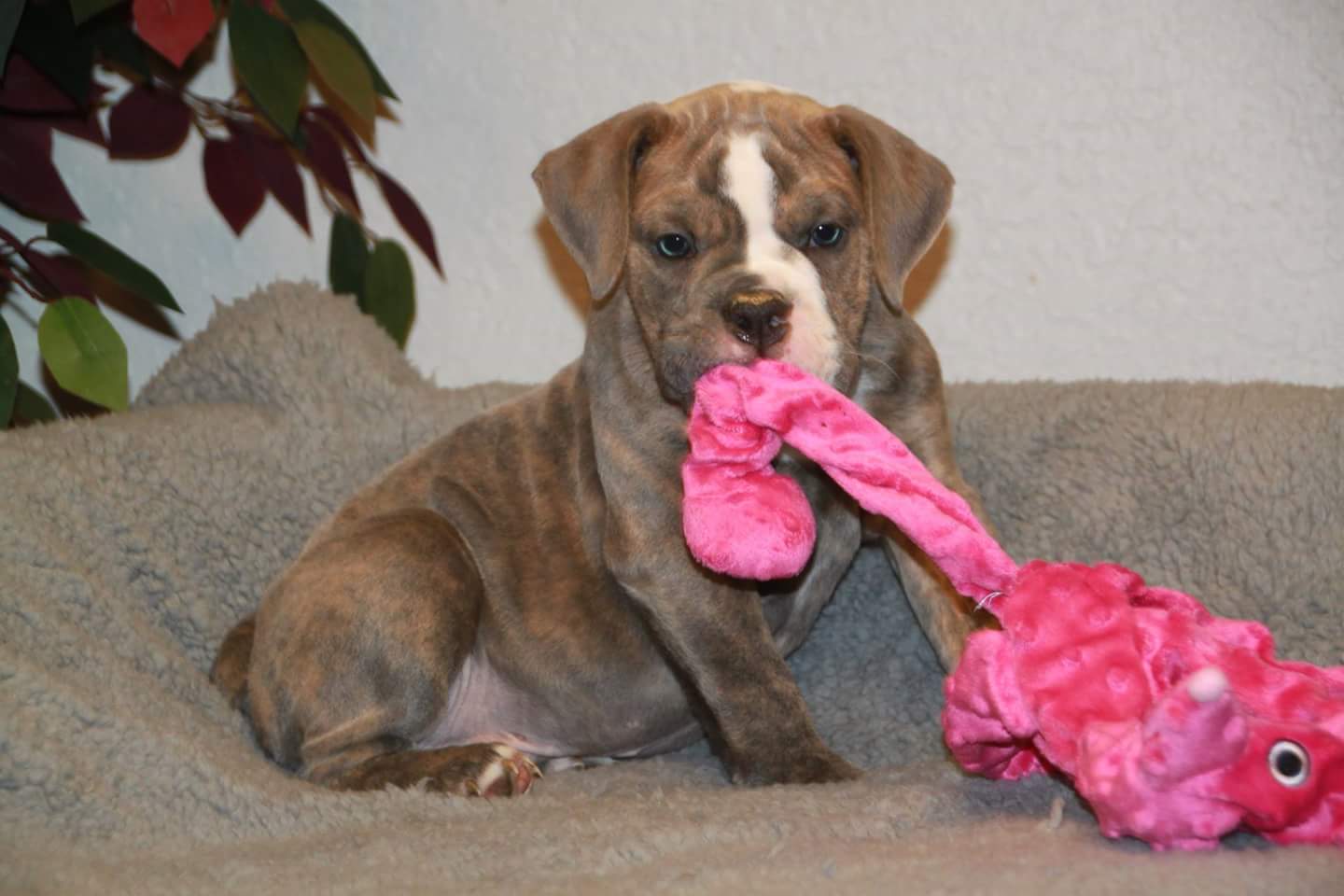 This is probably our very last litter with our Beef as he is now living the good life in Venice Beach with a repeat customer. We are more than impressed with this litter, we expect these pups to be some beefy Bulldogges. These puppies were born on 3-15-16 and are ready for loving pet homes now. Both Beef and Pretty were produced here at One of a Kind Bulldogs and some of the grandparents and great-grandparents were either produced here or owned by us.