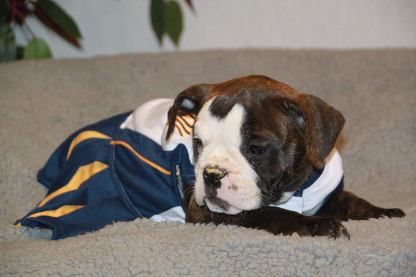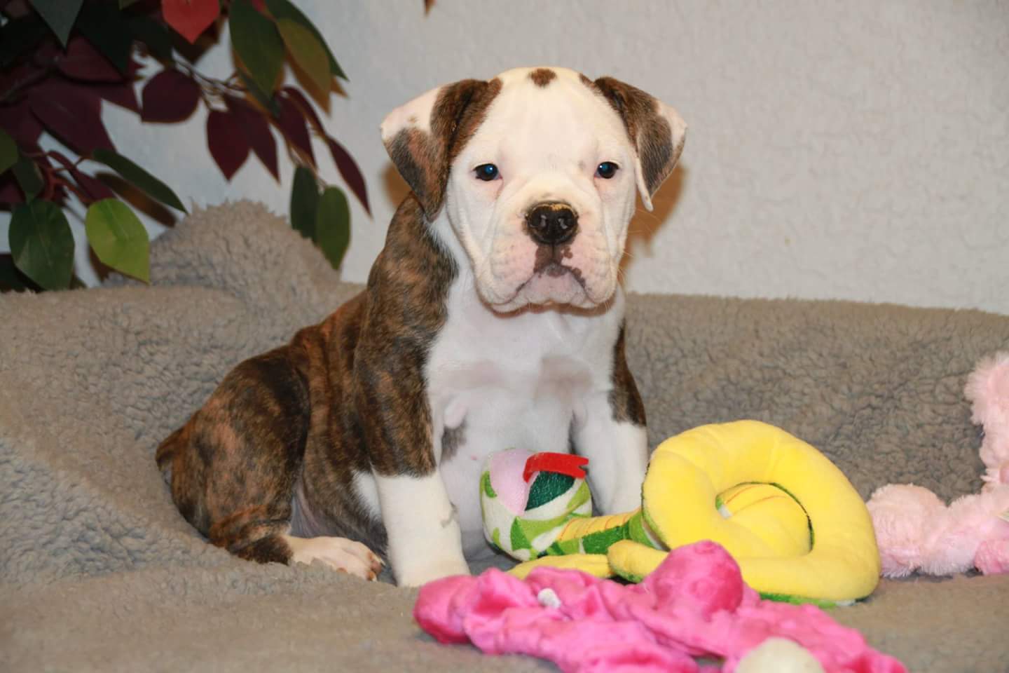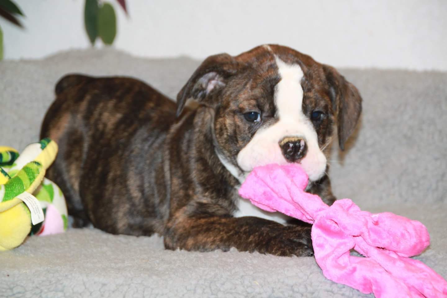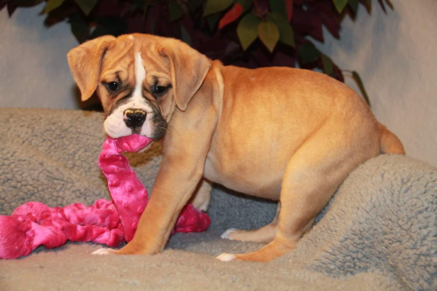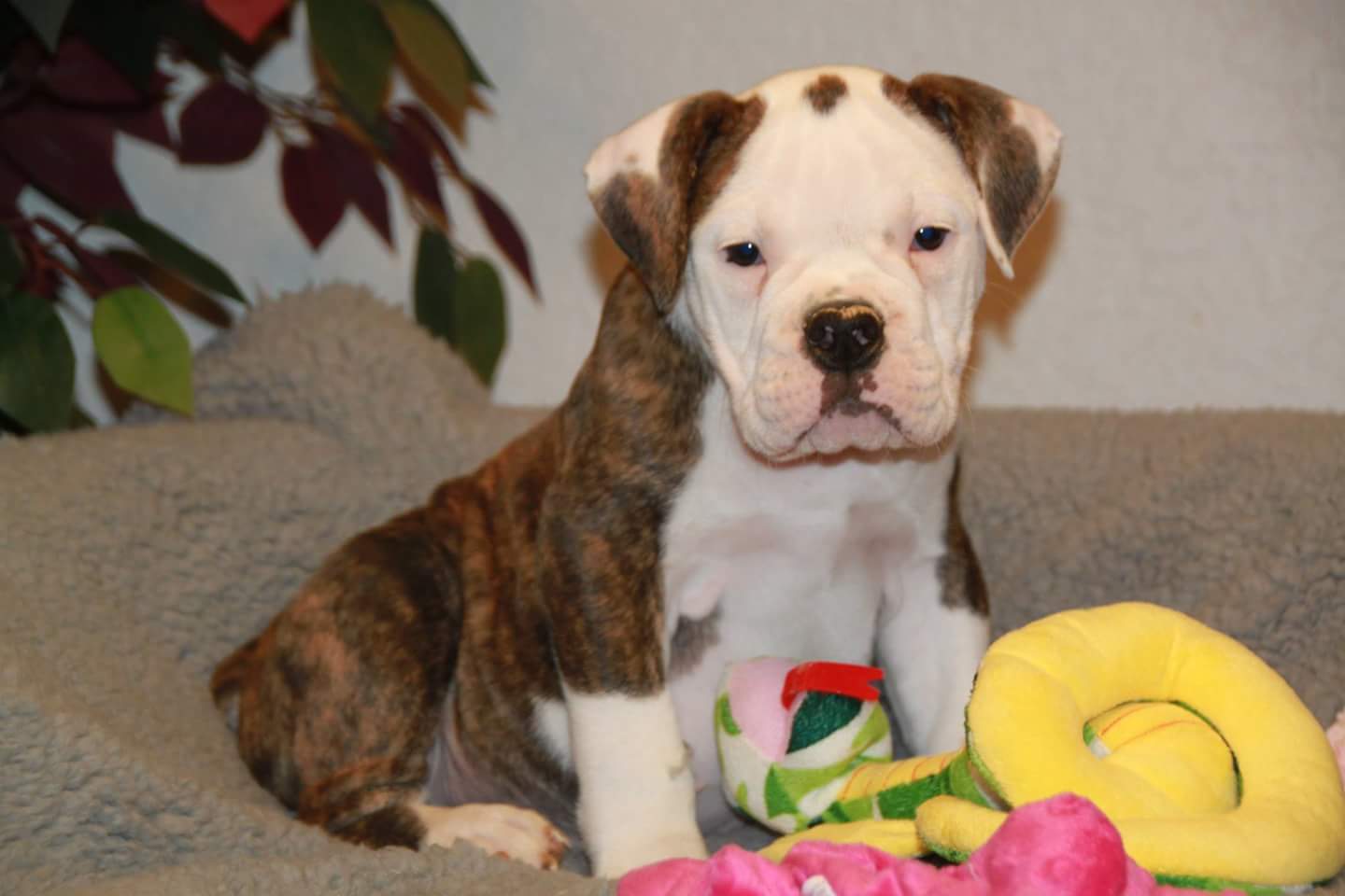 This is probably our very last litter with our Beef as he is now living the good life in Venice Beach with a repeat customer. We are more than impressed with this litter, we expect these pups to be some beefy Bulldogges. These puppies were born on 3-15-16 and are ready for loving pet homes now. Both Beef and Pretty were produced here at One of a Kind Bulldogs and some of the grandparents and great-grandparents were either produced here or owned by us.